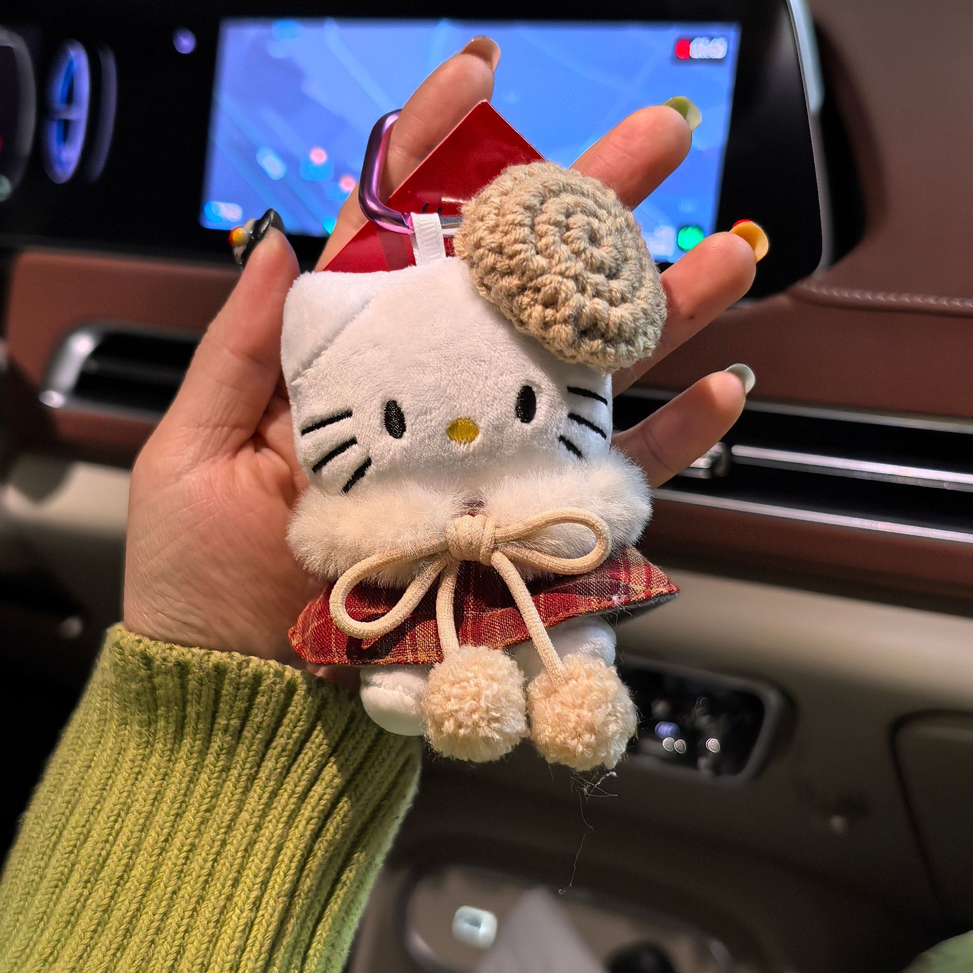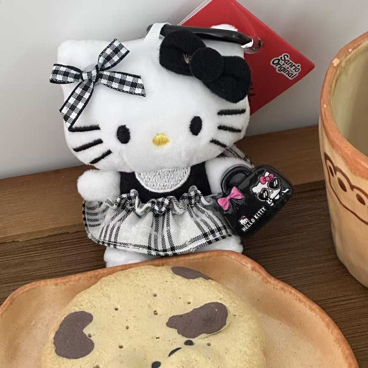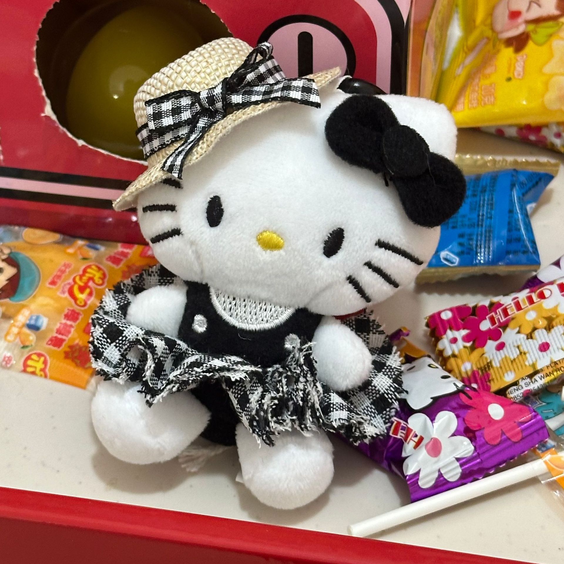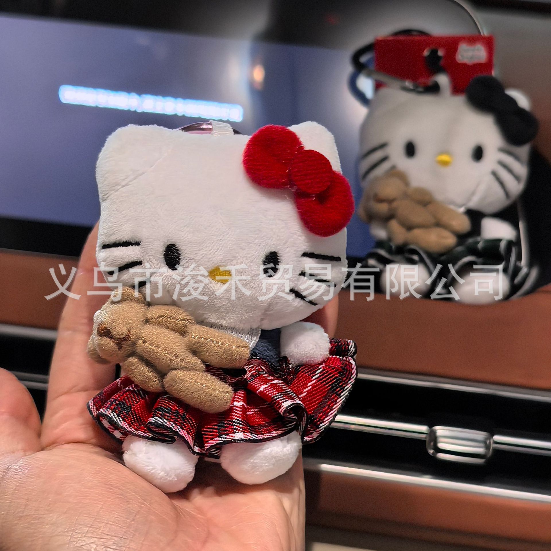 검은 밀짚 모자 키티 모자 아기 펜던트 러브 버클 인형 귀여운 햅번 스타일 펜던트 키 체인스토어 가기