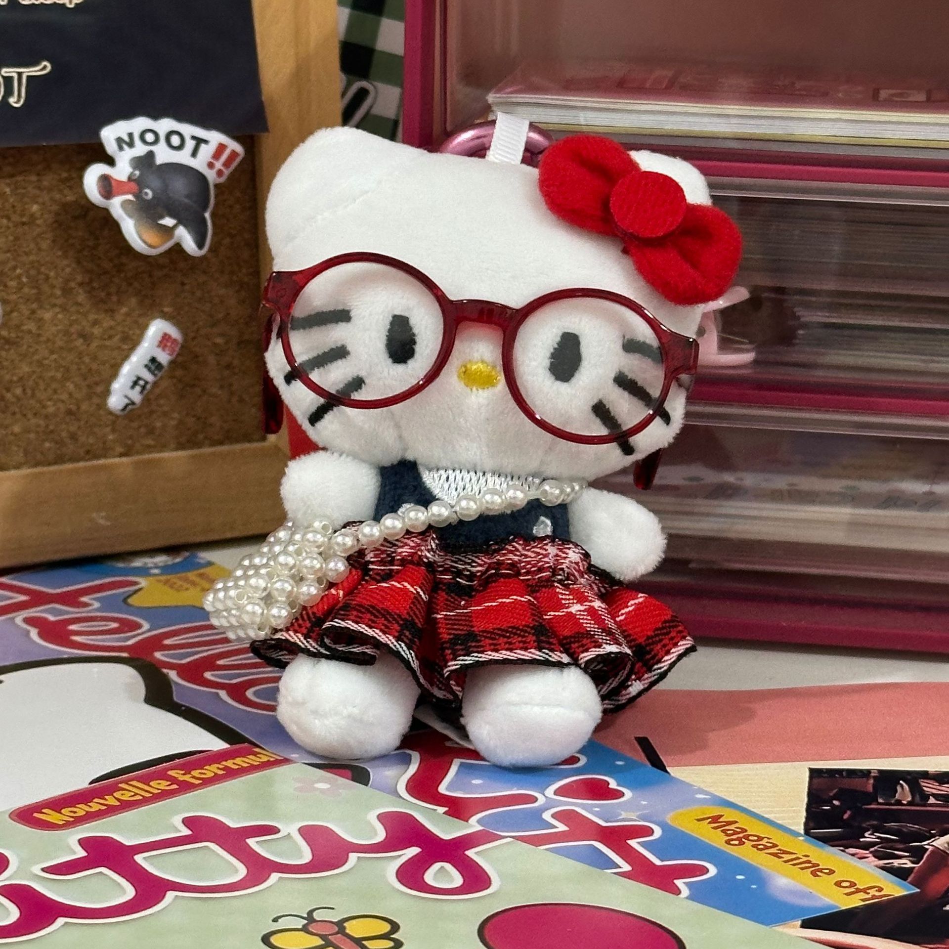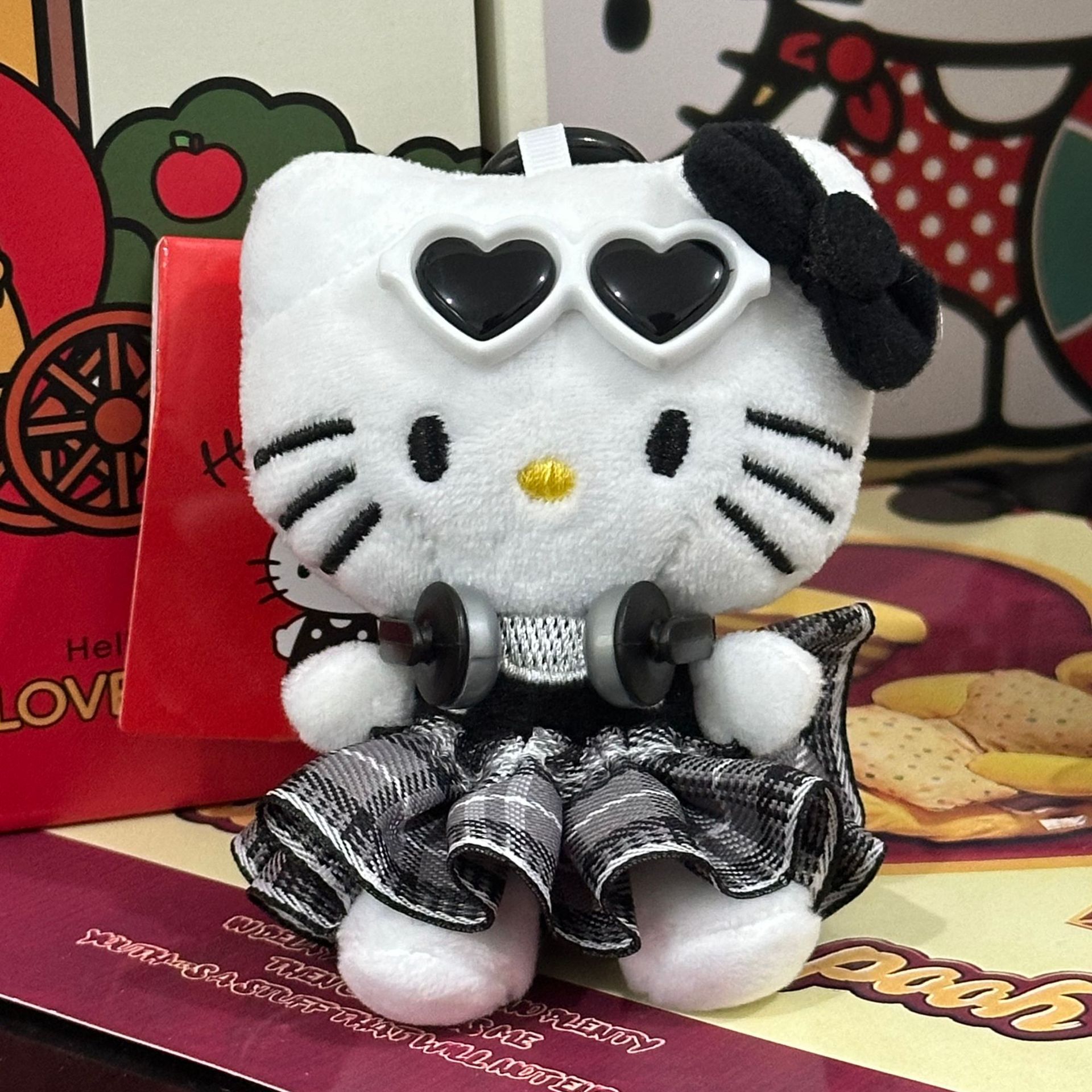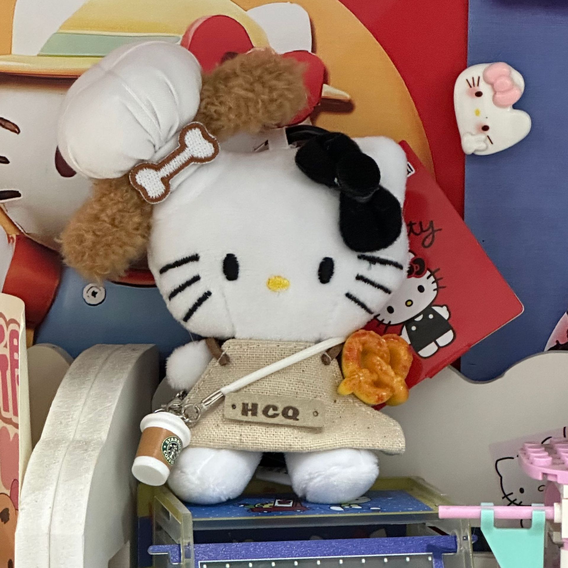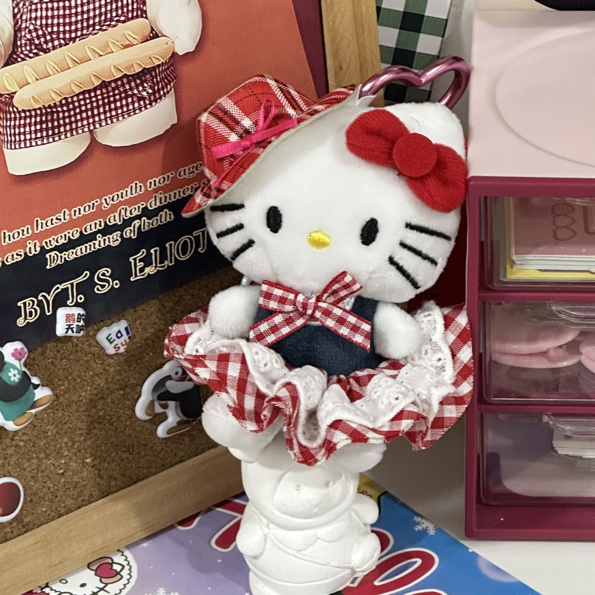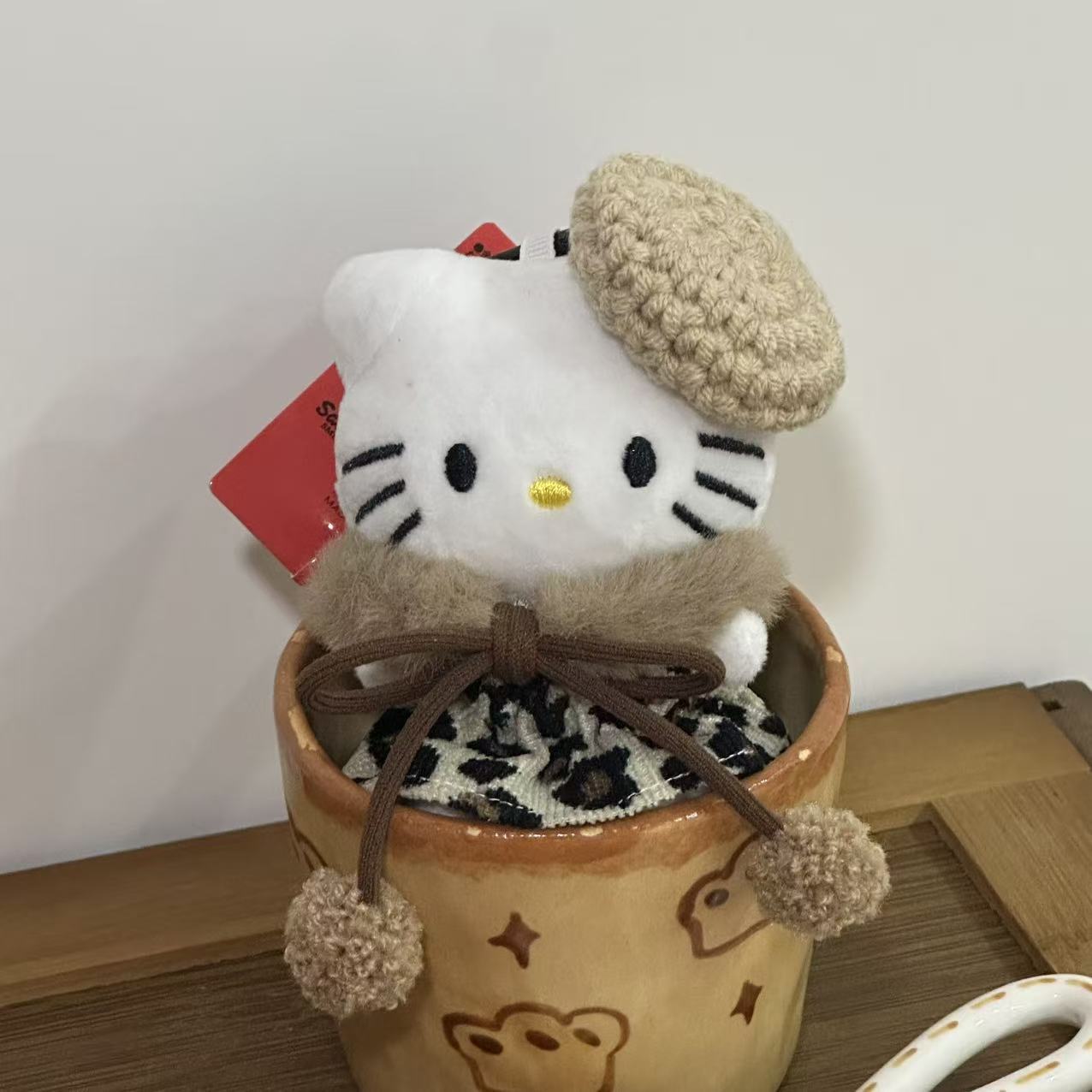 검은 밀짚 모자 키티 모자 아기 펜던트 러브 버클 인형 귀여운 햅번 스타일 펜던트 키 체인스토어 가기