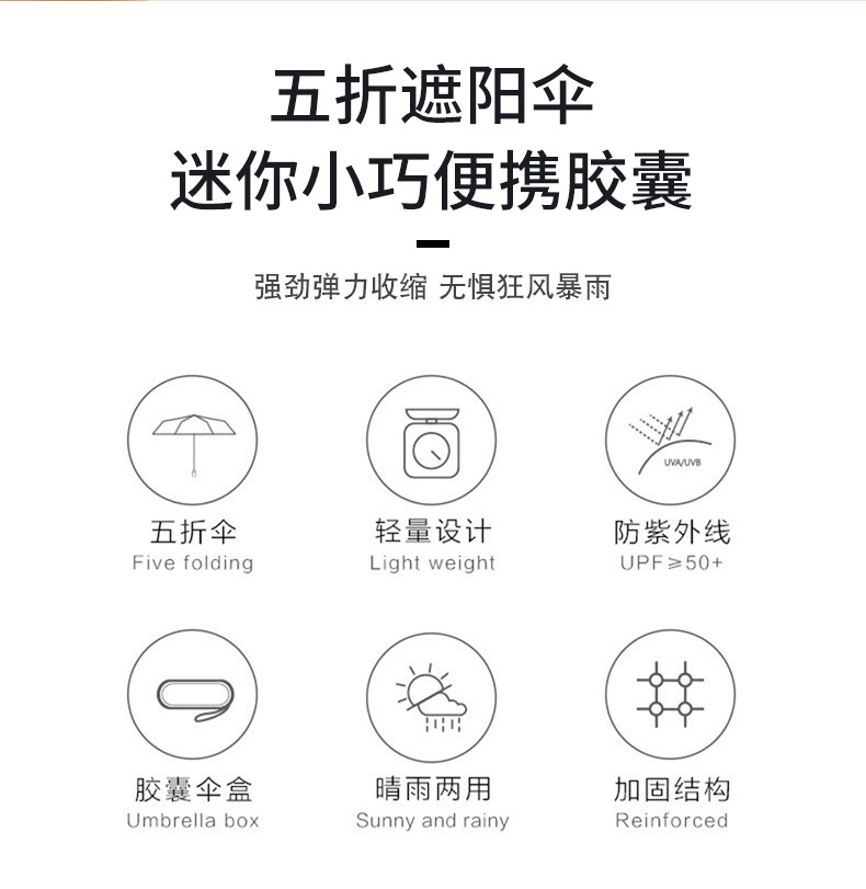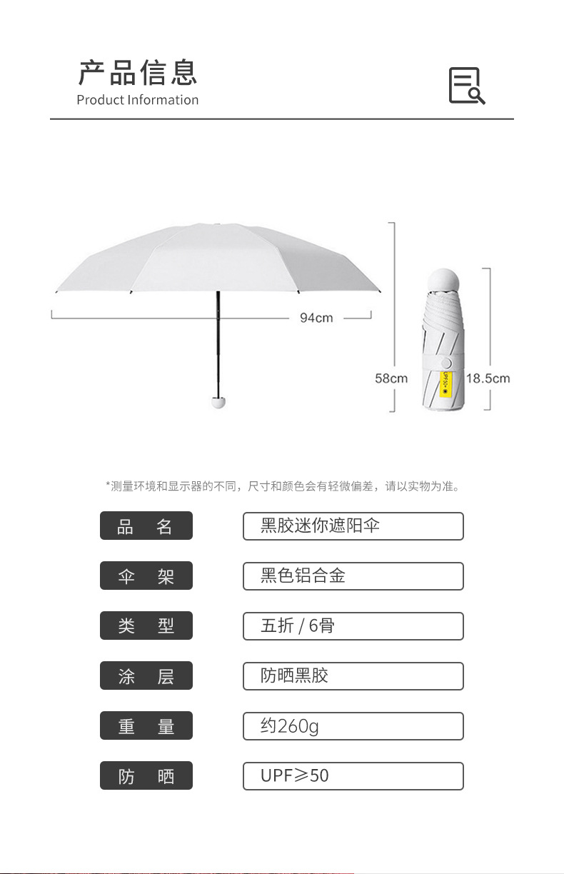 여성용 비닐 미니 태양 우산, 자외선 차단, 단색 캡슐 우산, 소형 및 휴대용 미니 태양 우산 도매