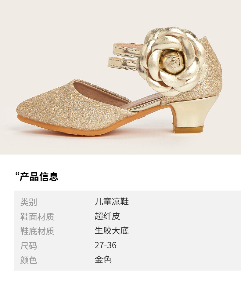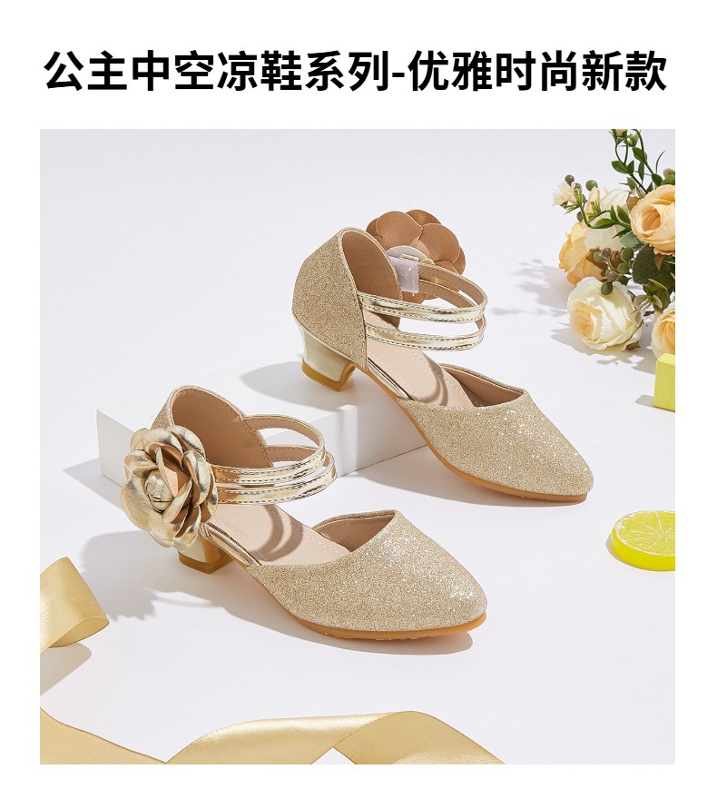 2026년 여름 신상 여아용 패션 뾰족코 속이 빈 하이힐 꽃무늬 여아 샌들