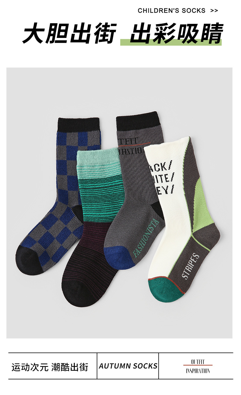 어린이 양말 도매 가을 새로운 편지 스포츠 아기 중간 튜브 양말 색상 일치 땀 흡수 뼈없는 소년 양말 면화스토어 가기