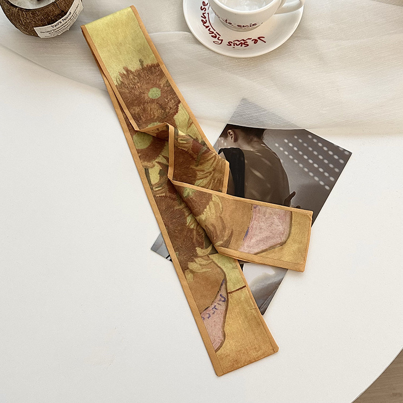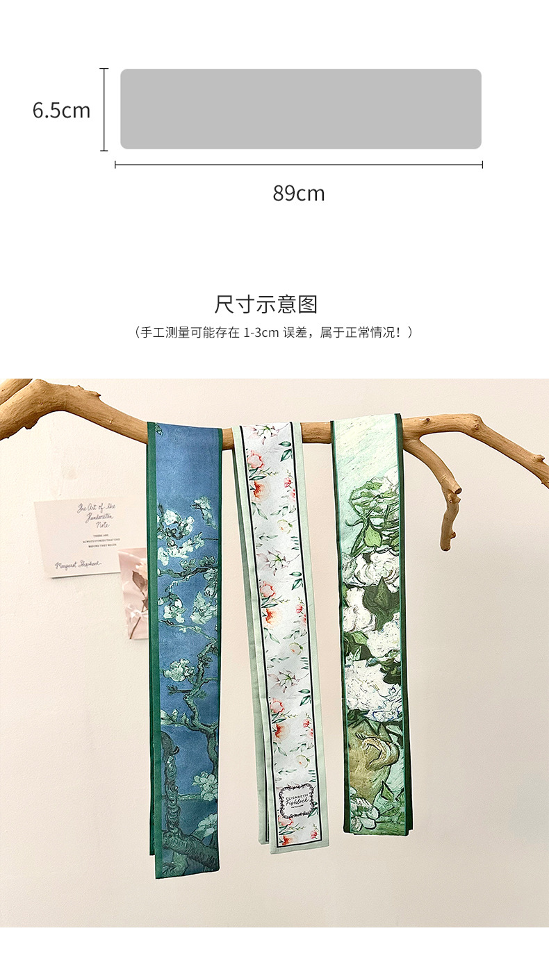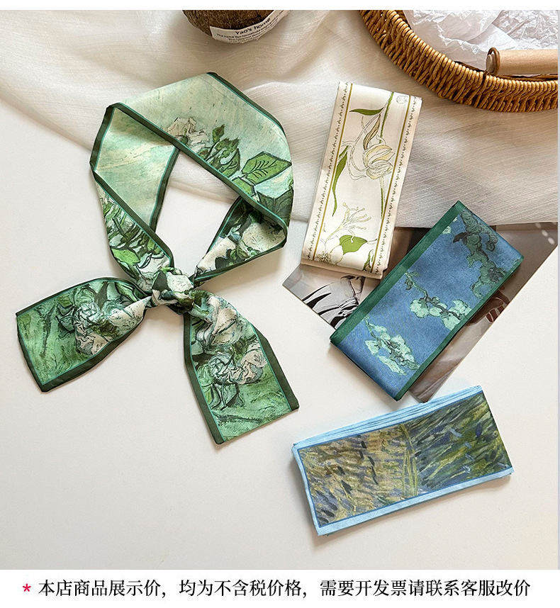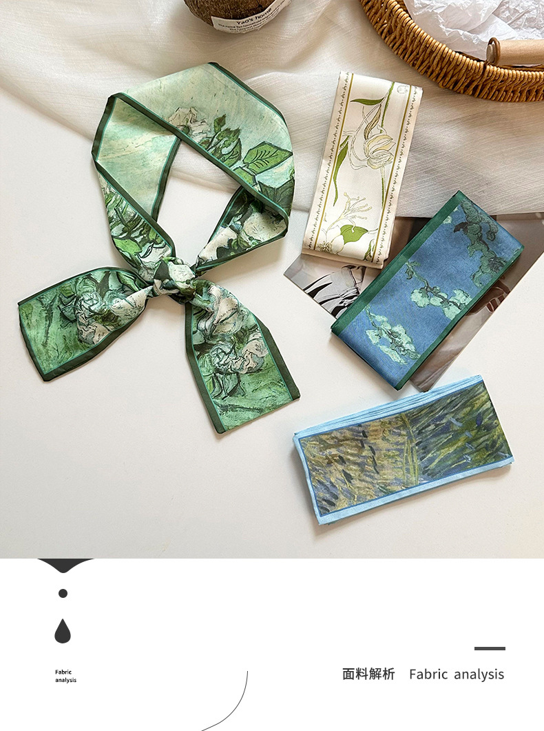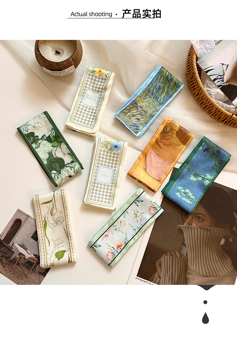 실크 스카프, 고급 여름 유화 꽃 터번, 머리띠, 장식용 작은 스카프, 가방 리본, 장식용 벨트스토어 가기