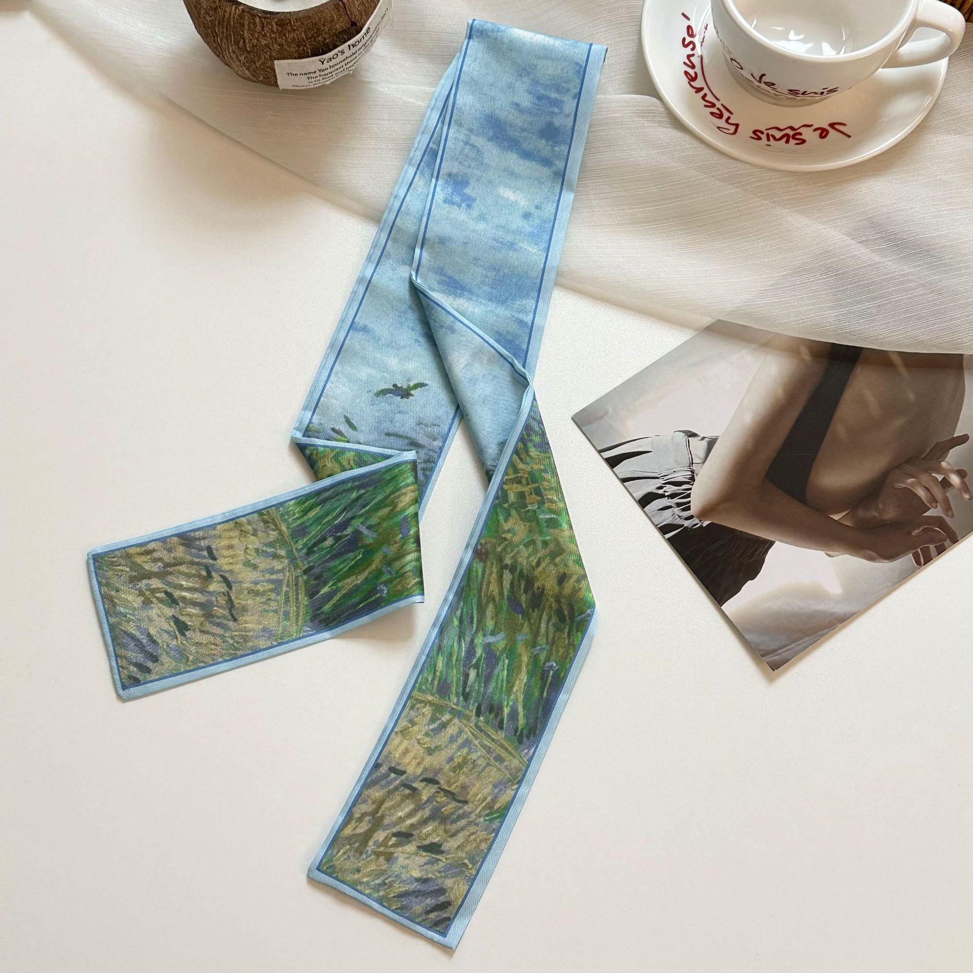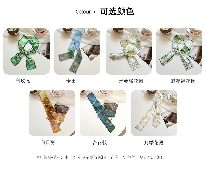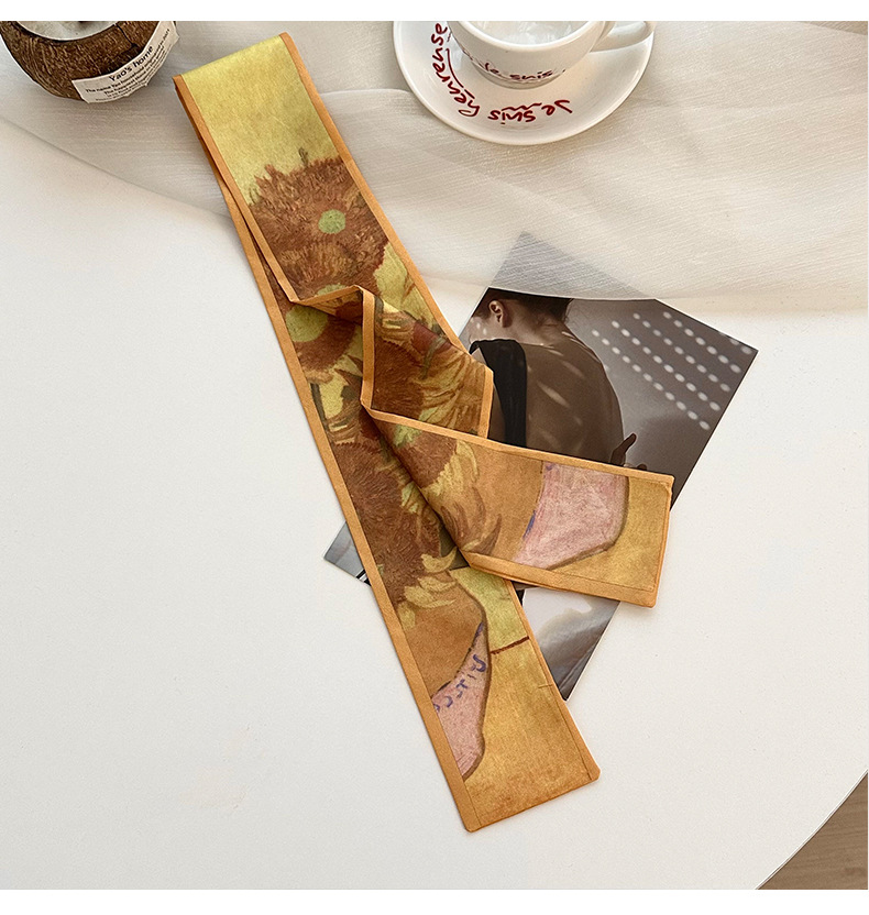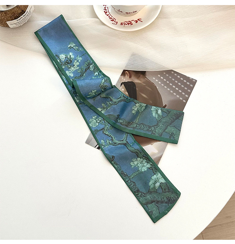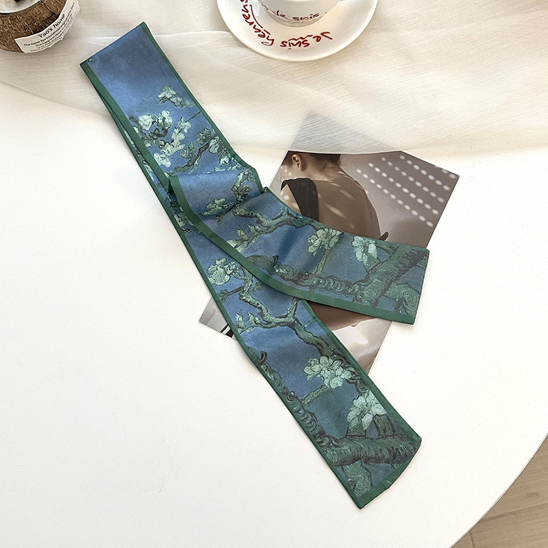 실크 스카프, 고급 여름 유화 꽃 터번, 머리띠, 장식용 작은 스카프, 가방 리본, 장식용 벨트스토어 가기