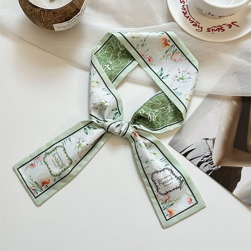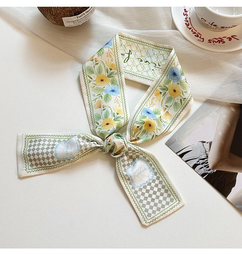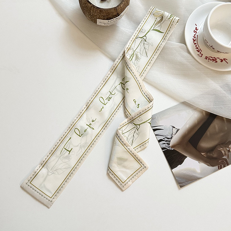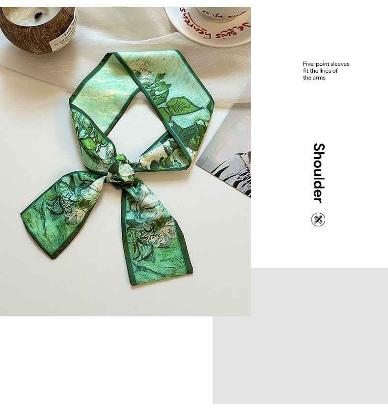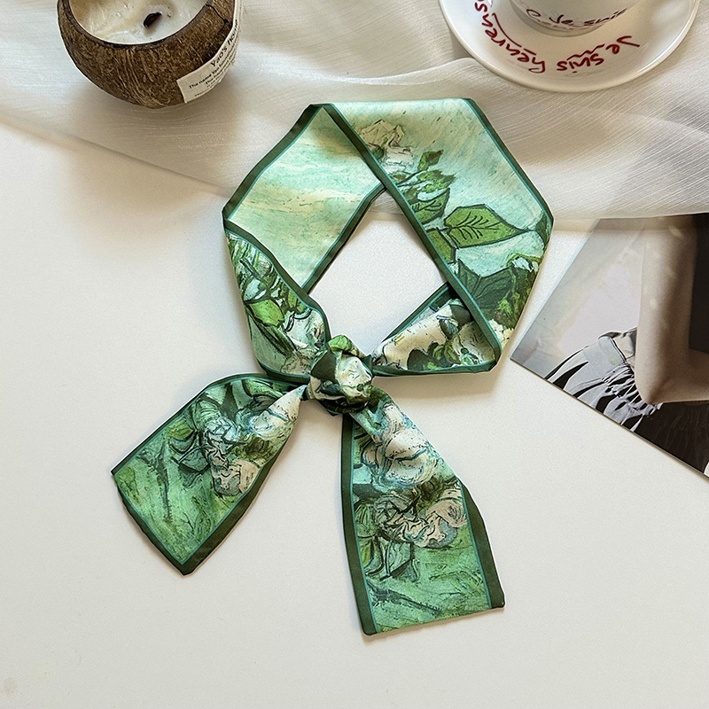 실크 스카프, 고급 여름 유화 꽃 터번, 머리띠, 장식용 작은 스카프, 가방 리본, 장식용 벨트