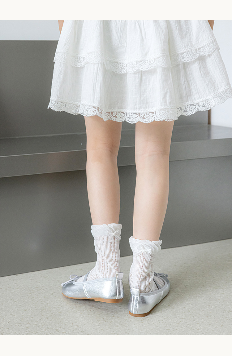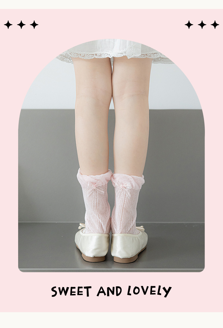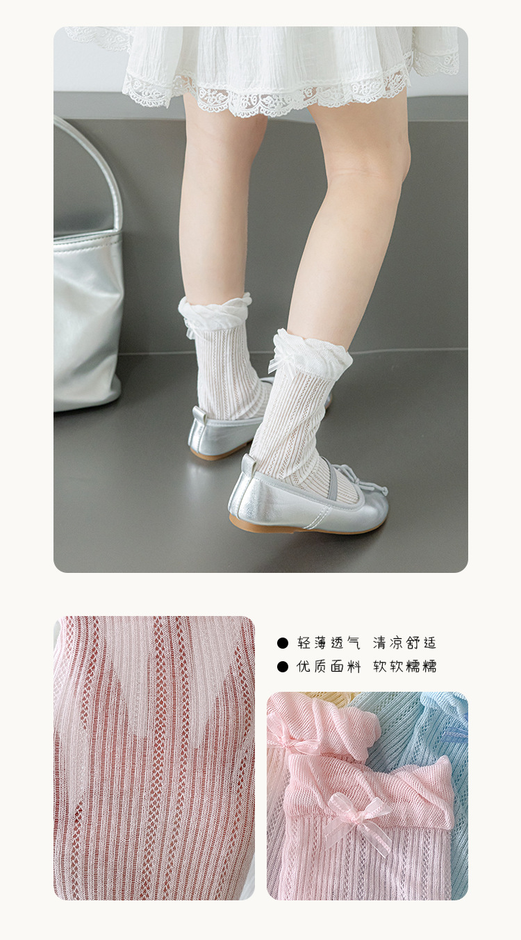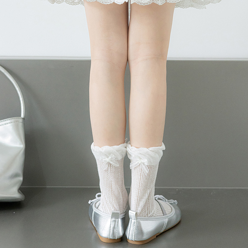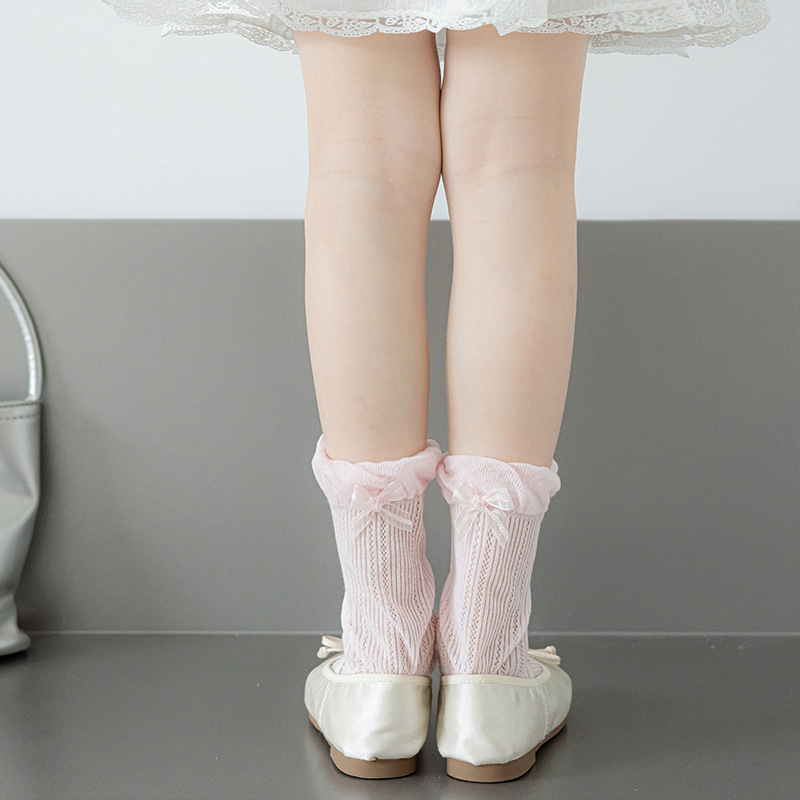 Misscucudog 어린이 양말 나비 매듭 레이스 여름 얇은 통기성 메쉬 소녀 뼈없는면 양말
