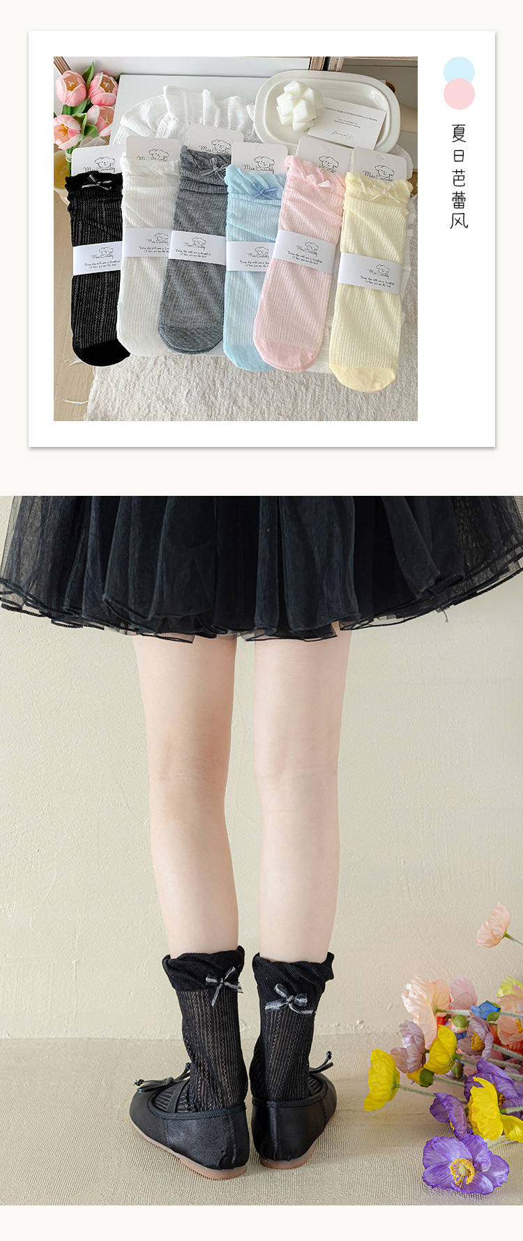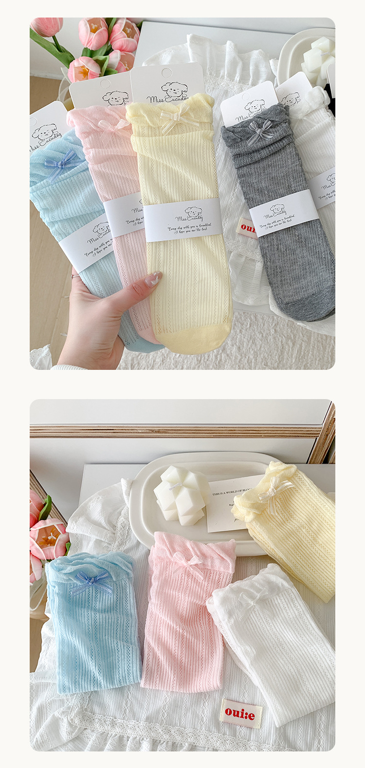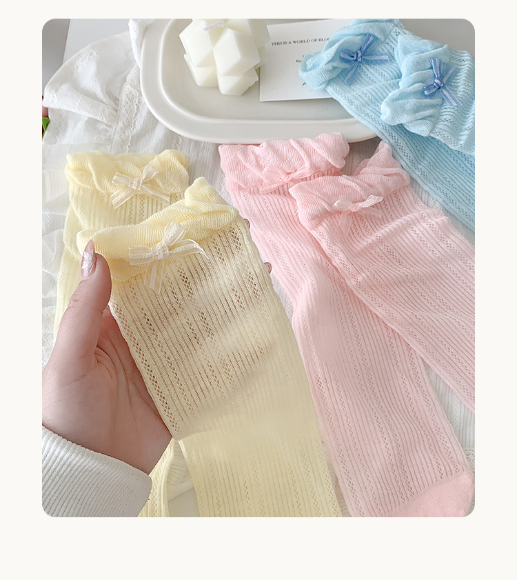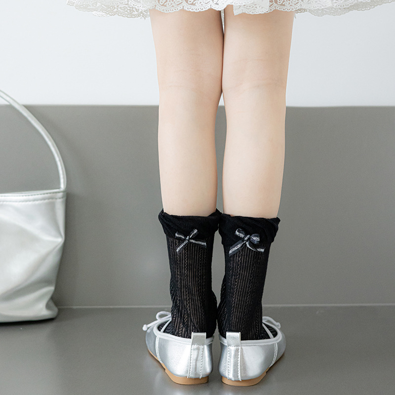 Misscucudog 어린이 양말 나비 매듭 레이스 여름 얇은 통기성 메쉬 소녀 뼈없는면 양말