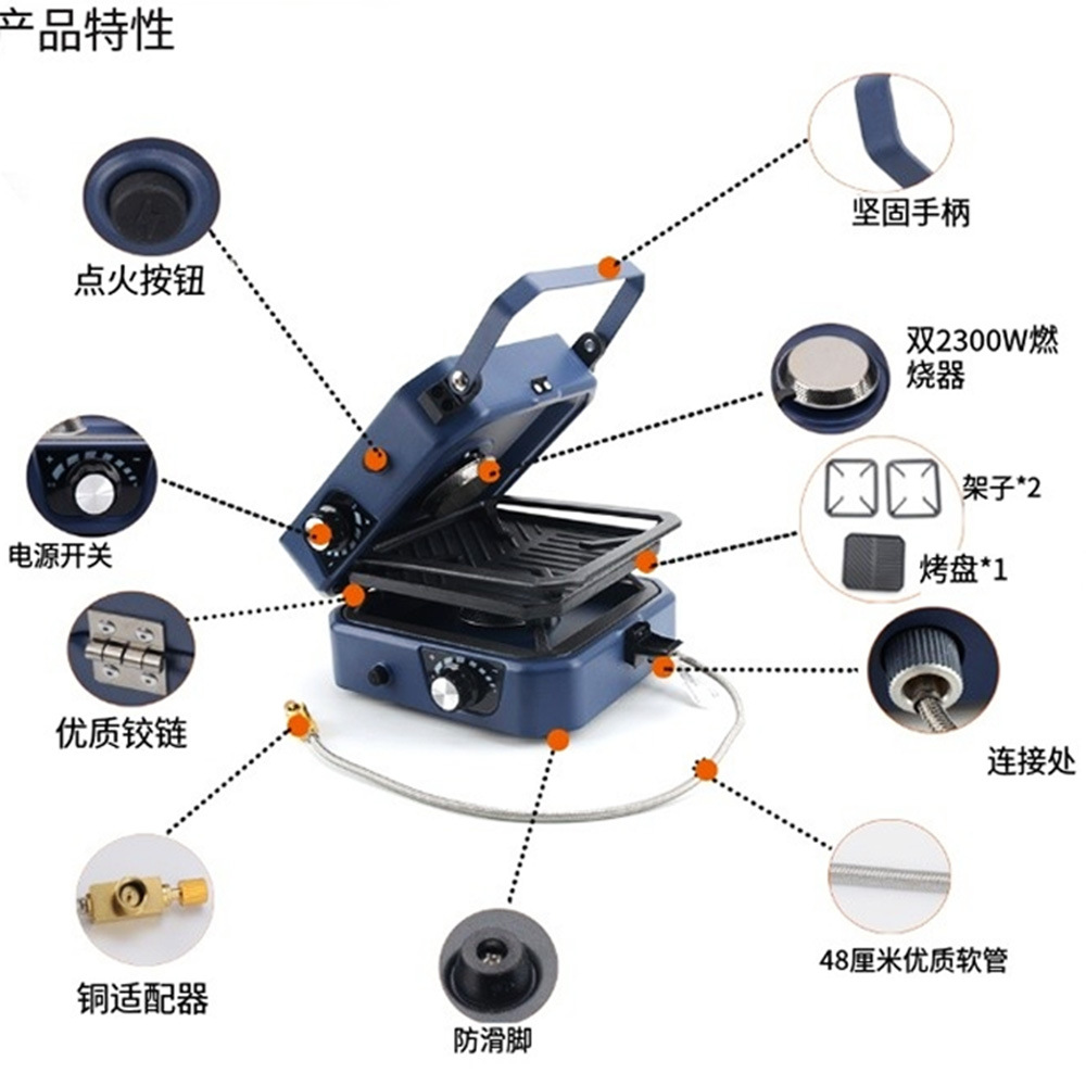 국경 간 양방향 카세트 스토브 휴대용 접이식 카세트 스토브 야외 일체형 바베큐 스토브 튀김 및 요리 가능 양면 스토브