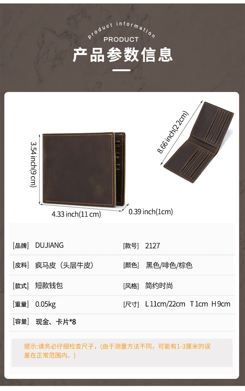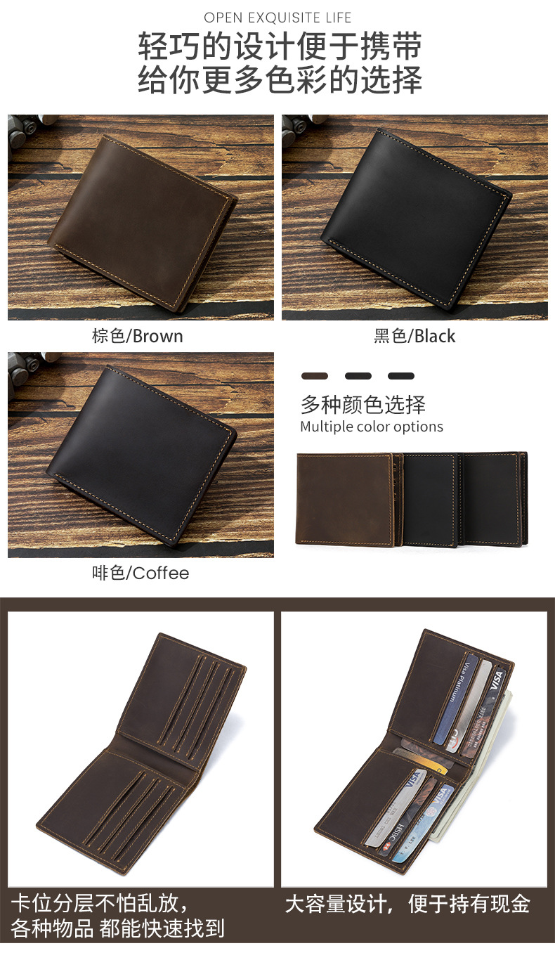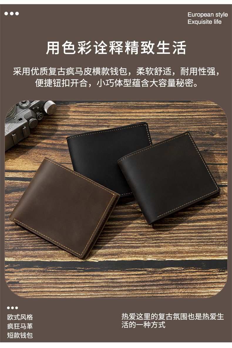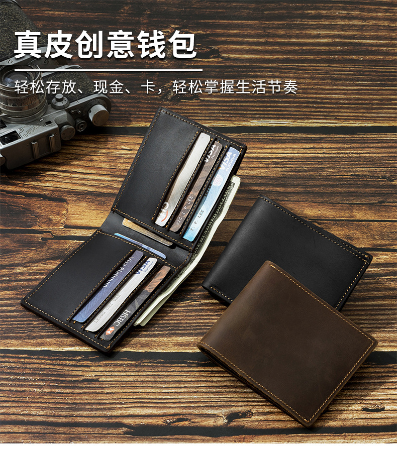 크로스보더 크레이지 호스 가죽 짧은 지갑 남성용 정품 가죽 카드 홀더 다기능 비즈니스 1층 소가죽 멀티 카드 슬롯 지갑스토어 가기
