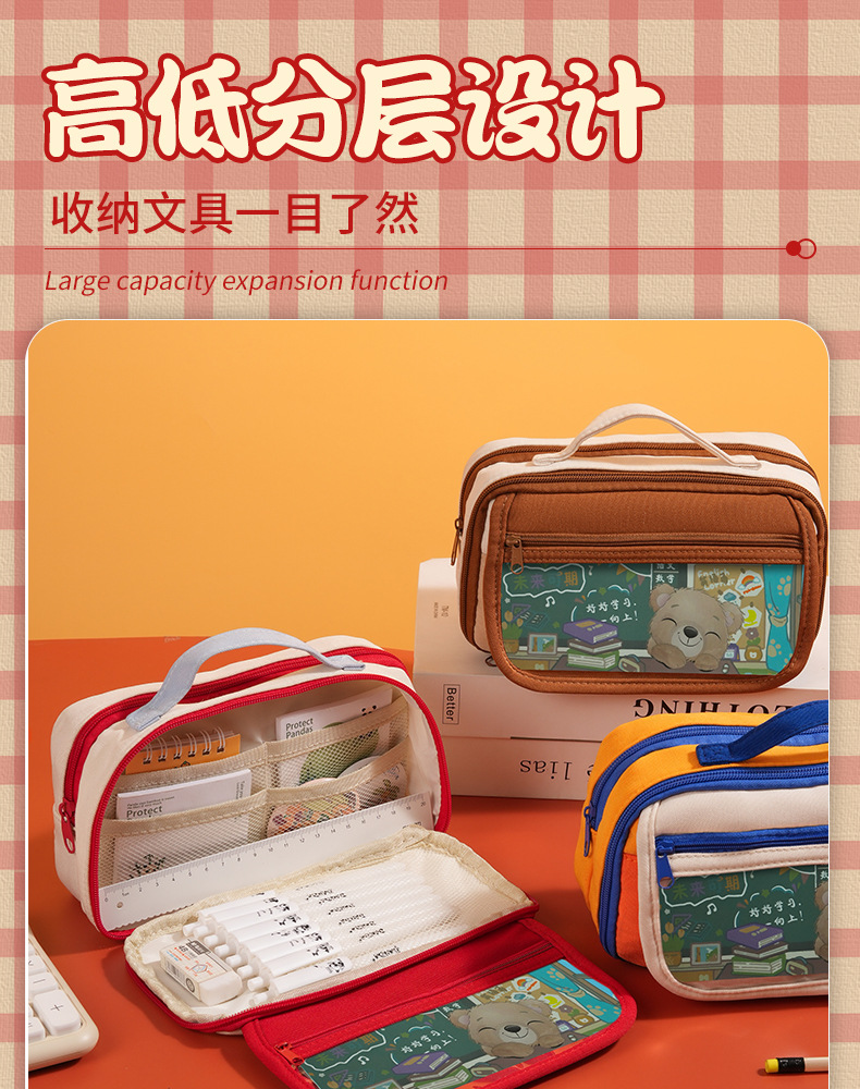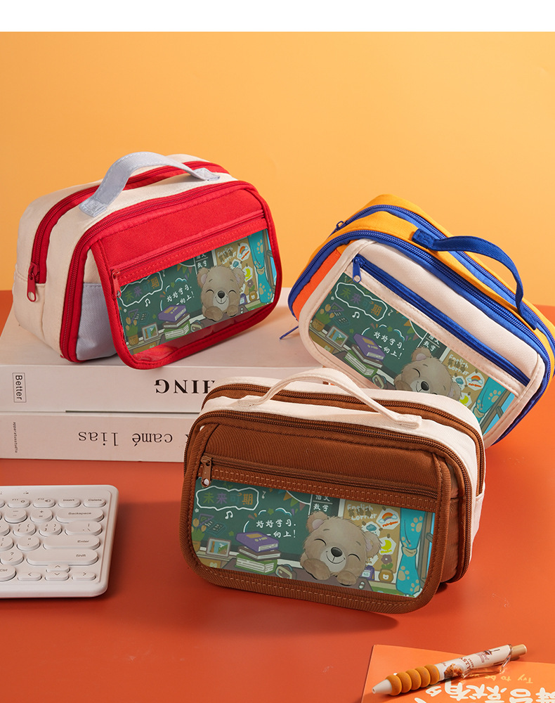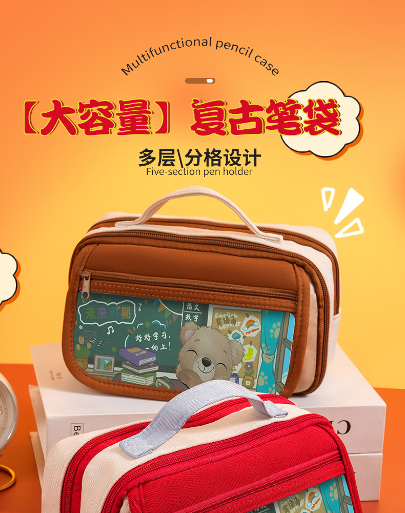 소녀용 연필 가방 ins 일본식 고급 틈새 복고풍 컬러 문구 가방 중학생 연필 상자 소년 문구 가방스토어 가기