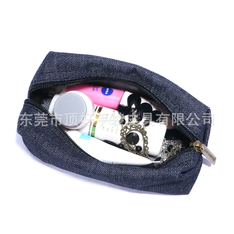새로운 휴대용 데님 사다리꼴 세면 용품 가방, 환경 친화적인 다기능 방수 데님 화장품 가방, 공장 맞춤형스토어 가기