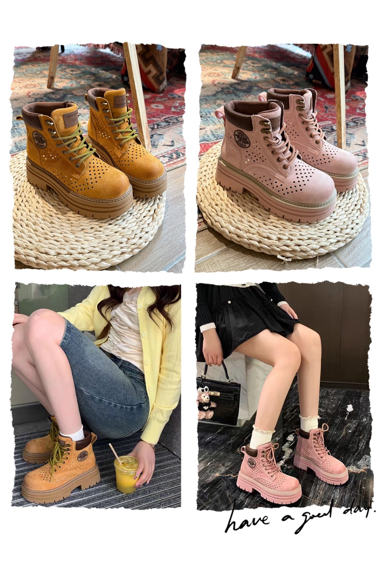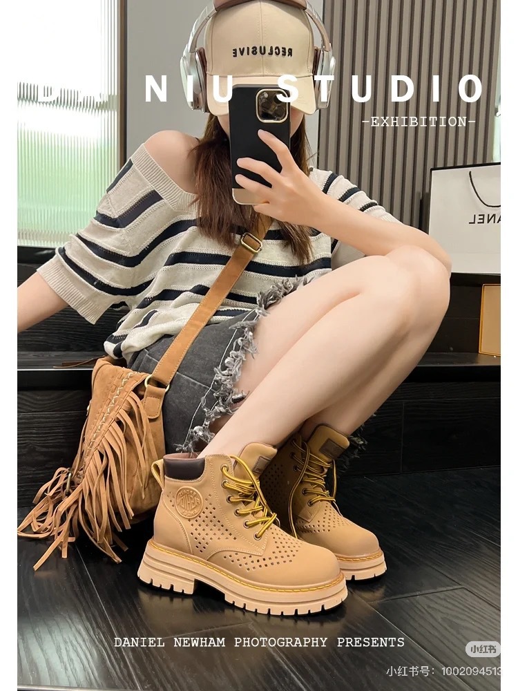 2024년 가을 여성용 유럽 반투명 소가죽 부츠, 짧은 부츠, 다재다능하고 캐주얼하며 패셔너블하고 복고풍 하이탑 마틴 부츠 트렌드스토어 가기