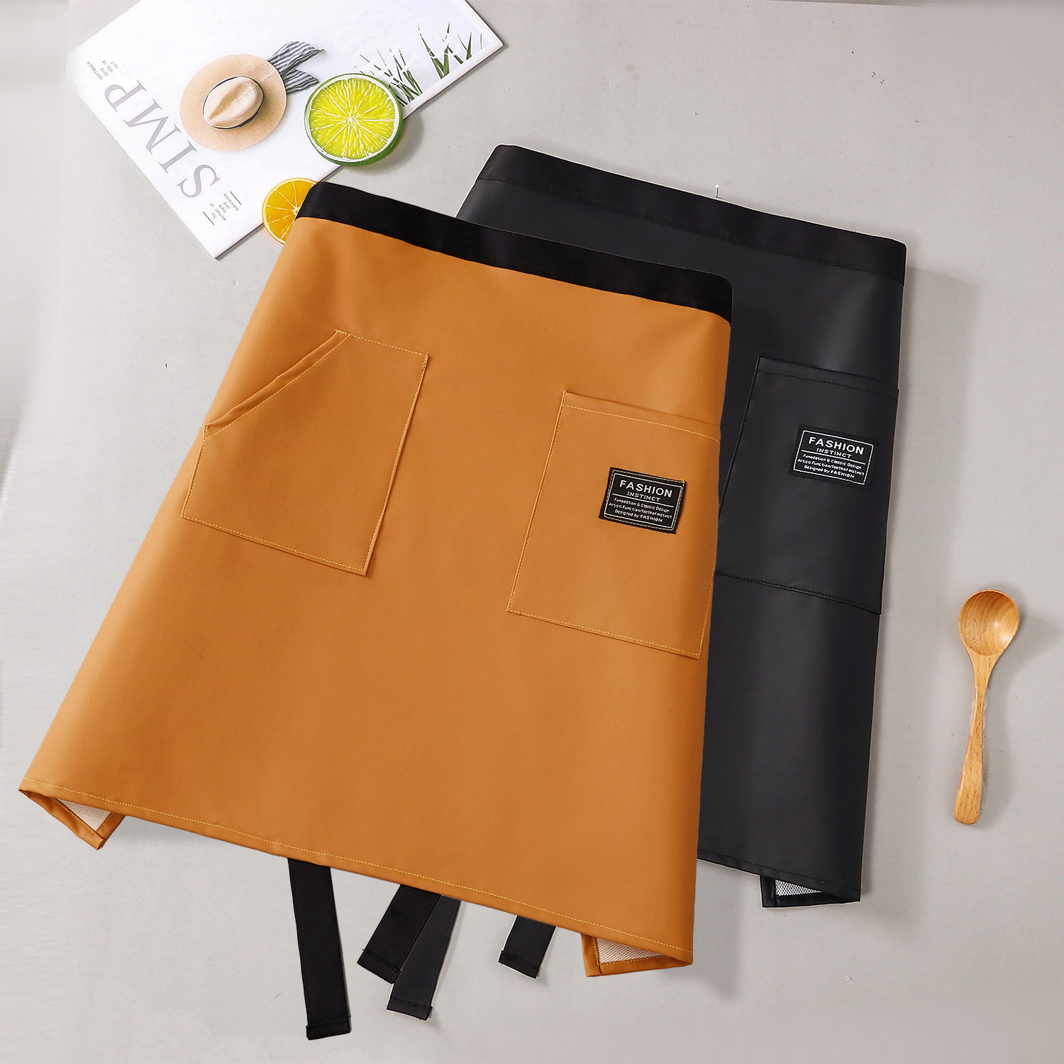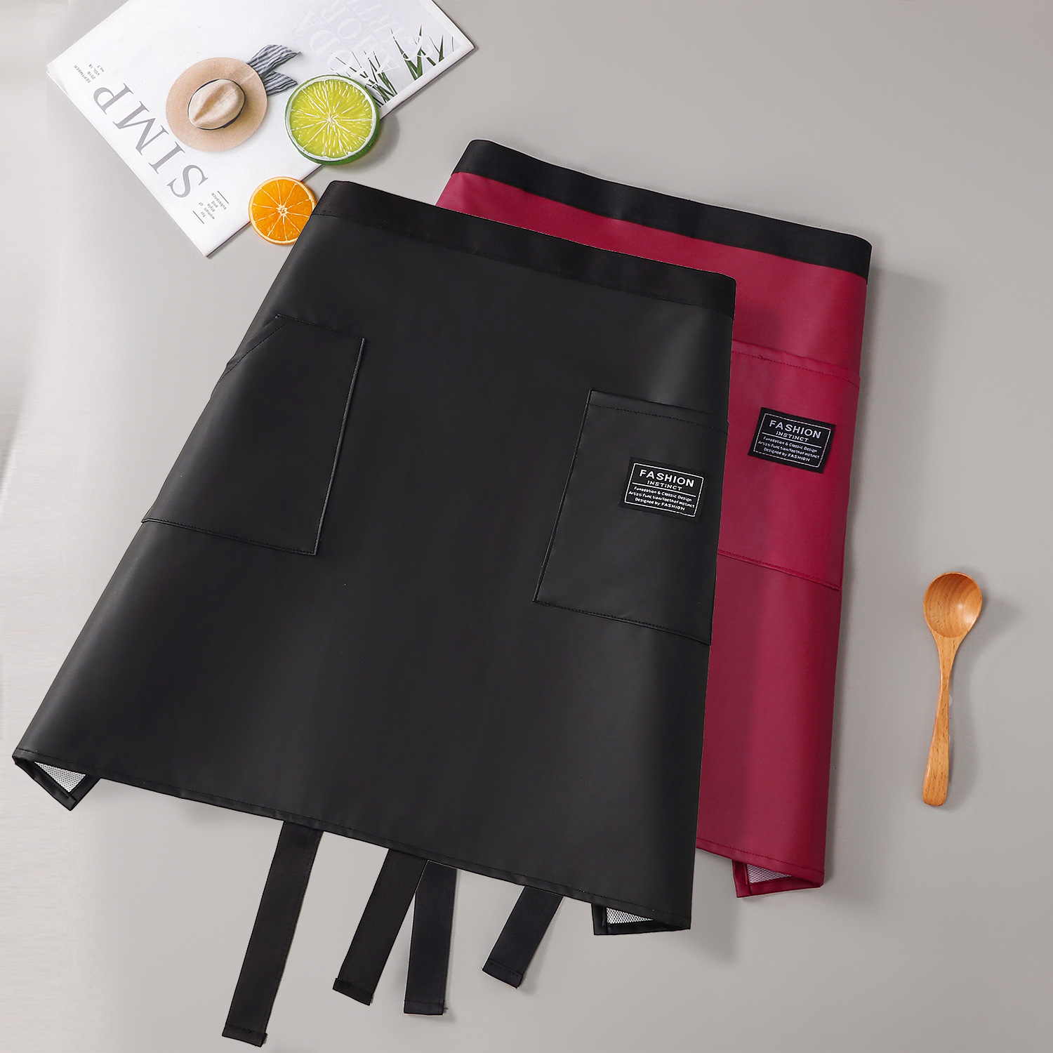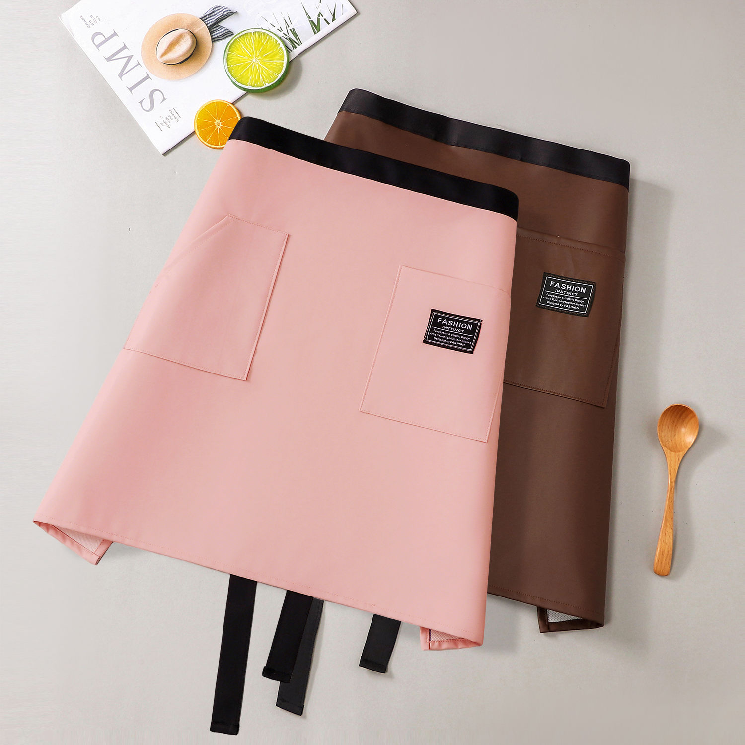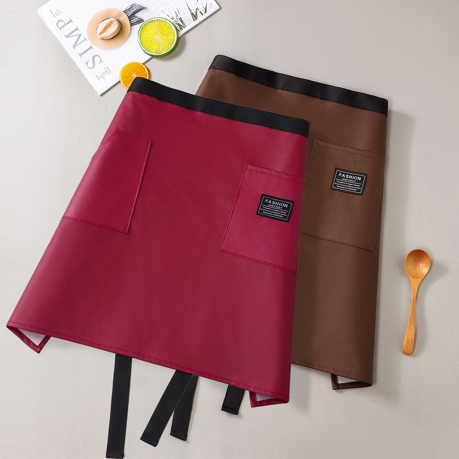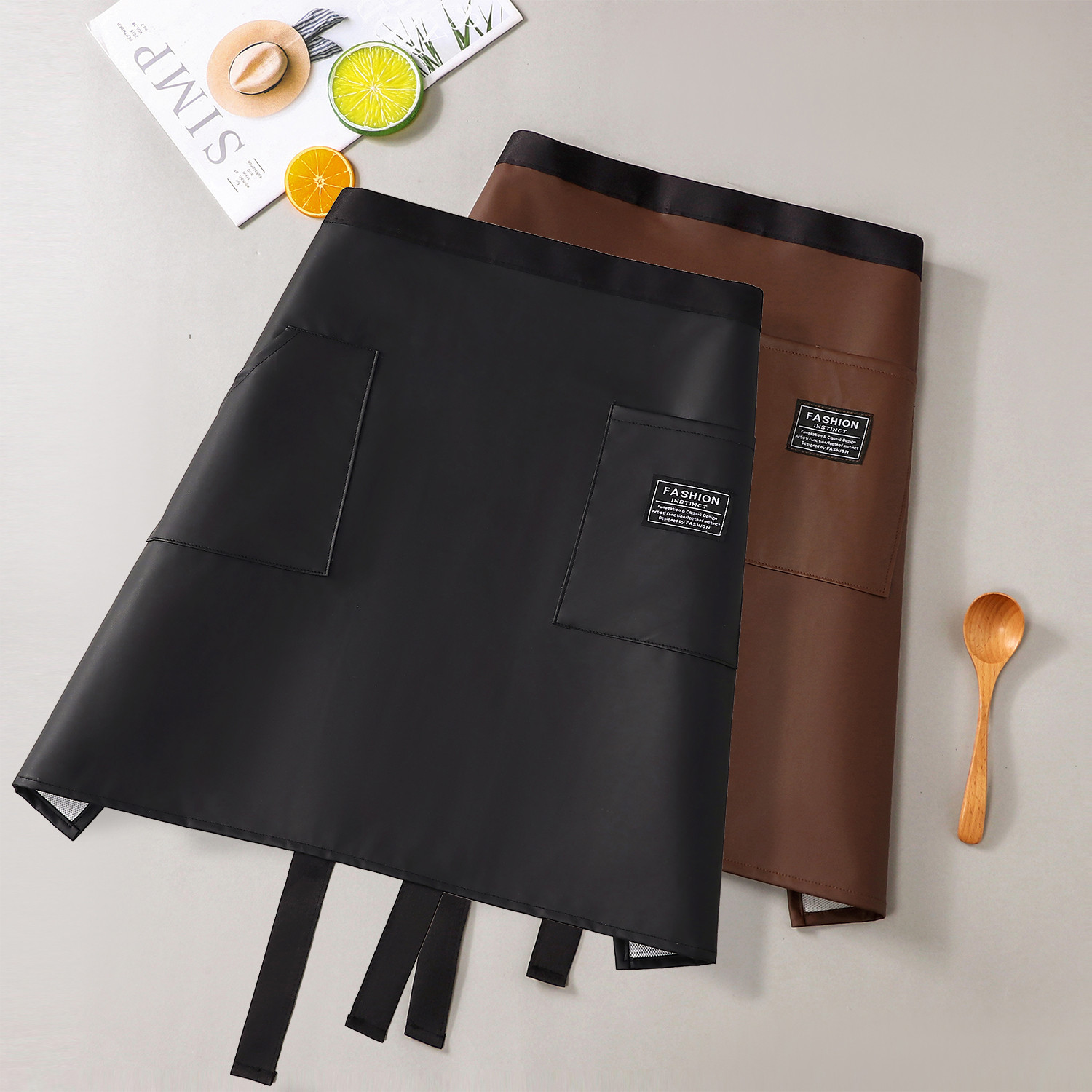 커피숍 2025 새로운 스타일의 케이터링용 하프 길이 앞치마 한국식 주방 가정용 가죽 작업복 방수 및 내유성스토어 가기