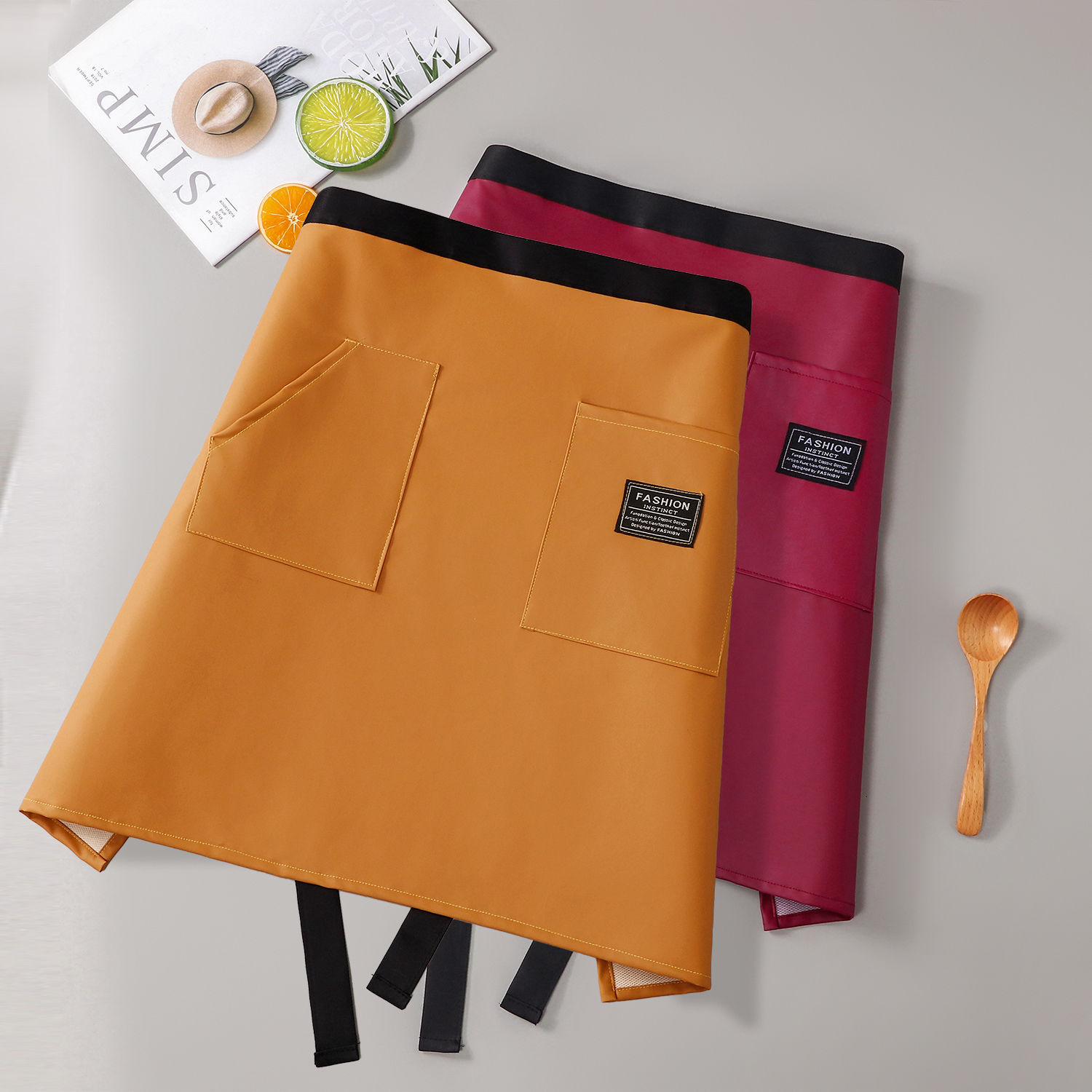 • 오렌지 + 커피 컬러 GC502 앞치마 PU 방수