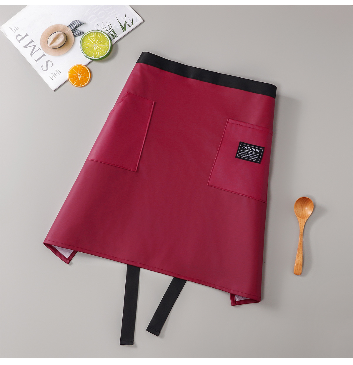 • 블랙 + 버건디 GC502 앞치마 PU 방수