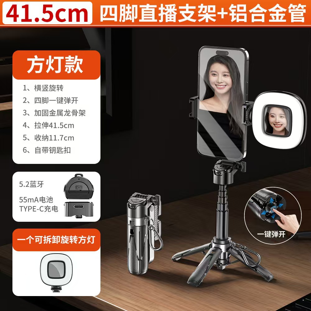 미니 휴대폰 블루투스 셀카봉 JC-25 바닥 장착형 흔들림 방지 접이식 4각대 여행용 휴대용 라이브 방송 및 사진 촬영