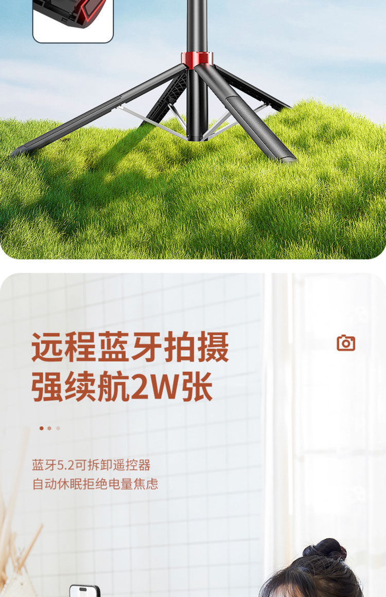 • 1.8m 접이식 손잡이 셀카봉 [생방송 헤드라이트] - 알루미늄 합금 [일체형 4각대 + 충전리모컨]