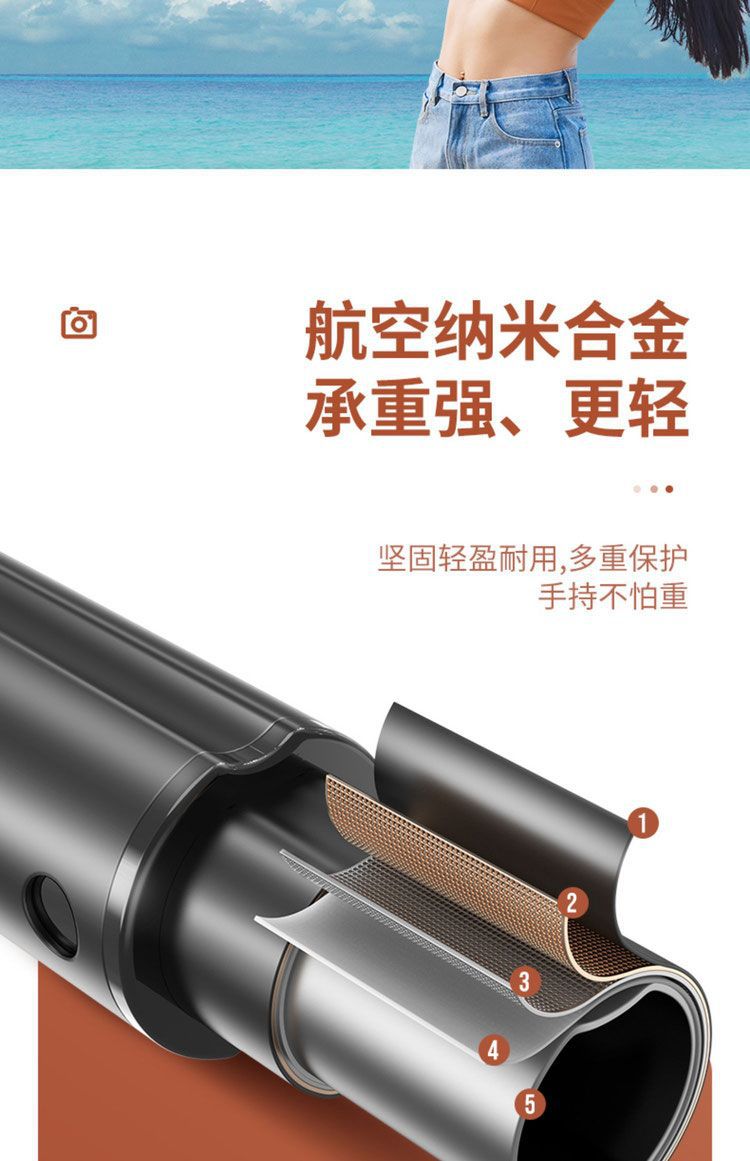 • 1.8m 접이식 손잡이 셀카봉 [단일 소형 조명] - 알루미늄 합금 [일체형 4각 + 충전 리모컨]