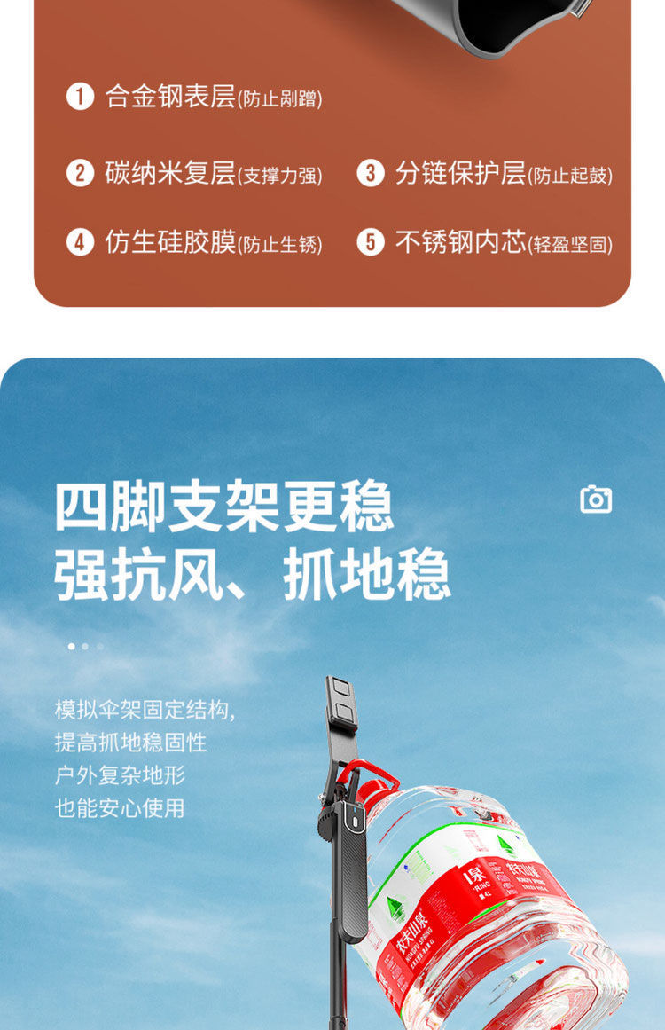 • 1.8m 접이식 손잡이 셀카봉 [조명 없음] - 스테인리스 스틸 [일체형 4각 스탠드 + 충전 리모컨]