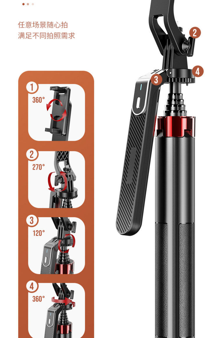 2025 새로운 셀카봉 4각 블루투스 휴대폰 라이브 방송 회전 휴대용 짐벌 필 라이트 데스크탑 플로어 스탠드