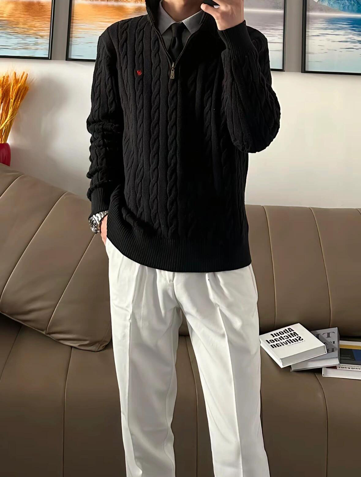 스캔 가능한 RL 랄프 포니 로고 하프 지퍼 스웨터 여성 가을, 겨울 커플 스웨터 남성 자수 트위스트