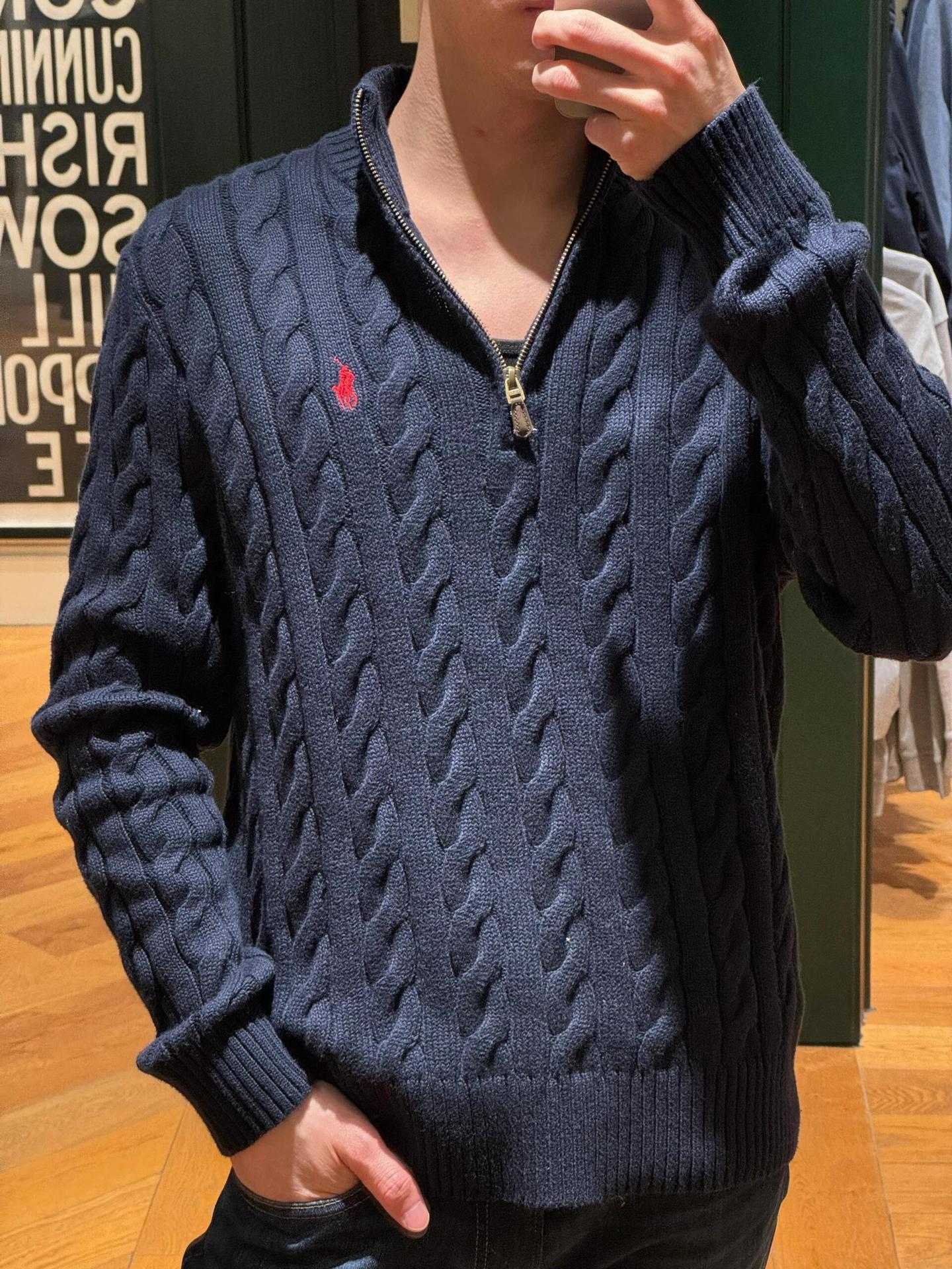스캔 가능한 RL 랄프 포니 로고 하프 지퍼 스웨터 여성 가을, 겨울 커플 스웨터 남성 자수 트위스트스토어 가기
