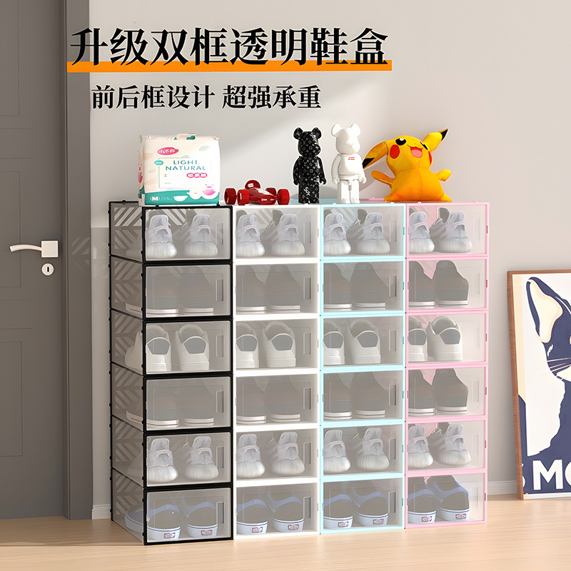 현관문 수납 투명 신발장 수납 신발장 기숙사 인터넷 연예인 신발장 공간 절약 업그레이드 전후 이중 프레임 내하중
