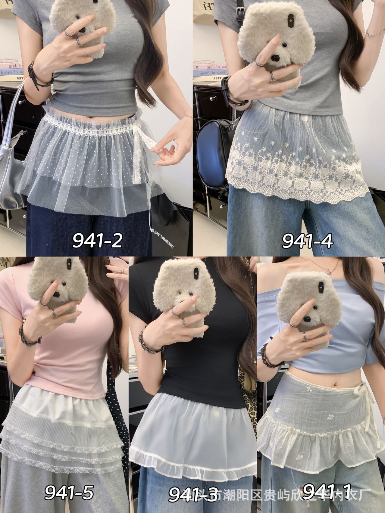 2025 새로운 여름 스타일 프렌치 시크 케이크 스커트, 속이 빈 레이스 메쉬 하이 웨이스트 스커트, 여아용스토어 가기