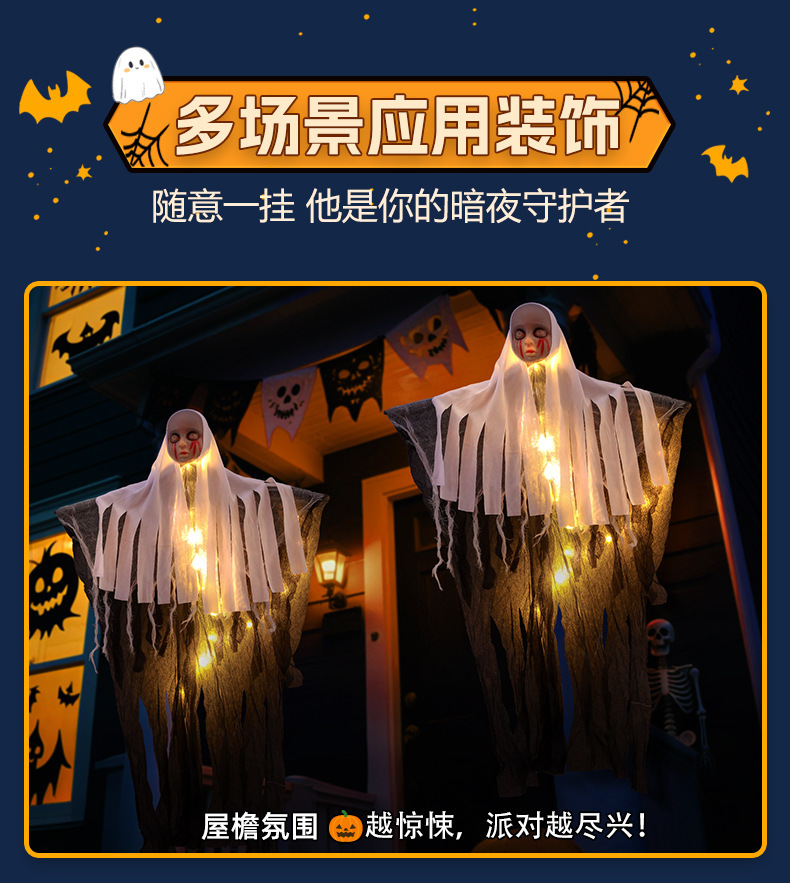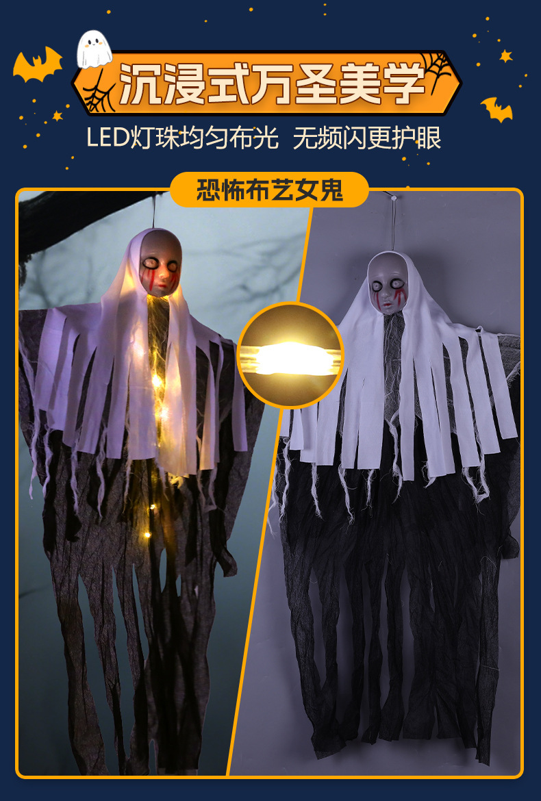국경을 넘는 새로운 할로윈 장식 수녀 유령 LED 교수형 램프 해골 유령 공포 분위기 장식 교수형 장식품스토어 가기