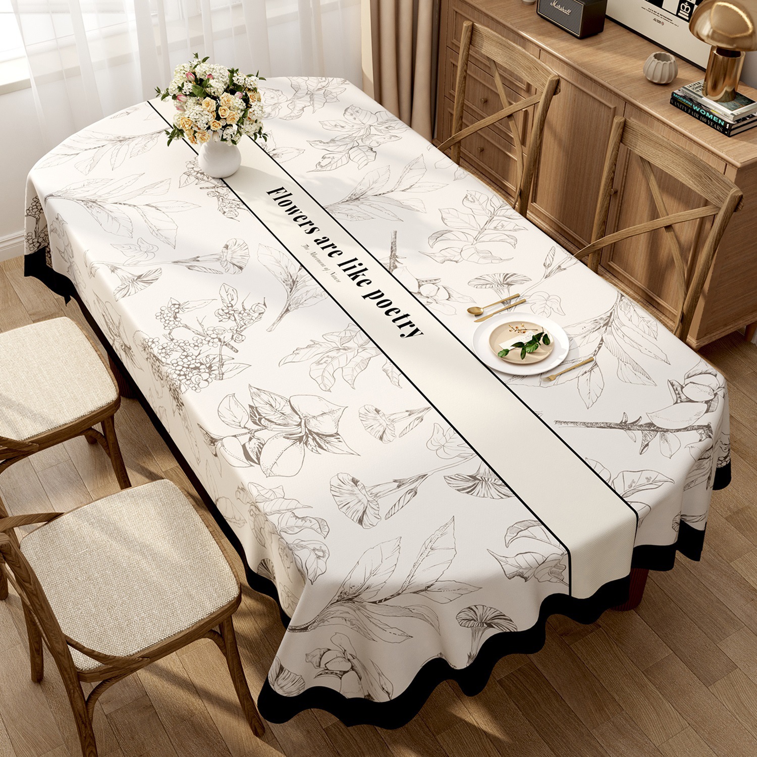 프랑스 타원형 식탁보 방수 및 내유성 노워시 화상 방지 PVC 식탁보 라이트 럭셔리 커피 테이블 커버스토어 가기
