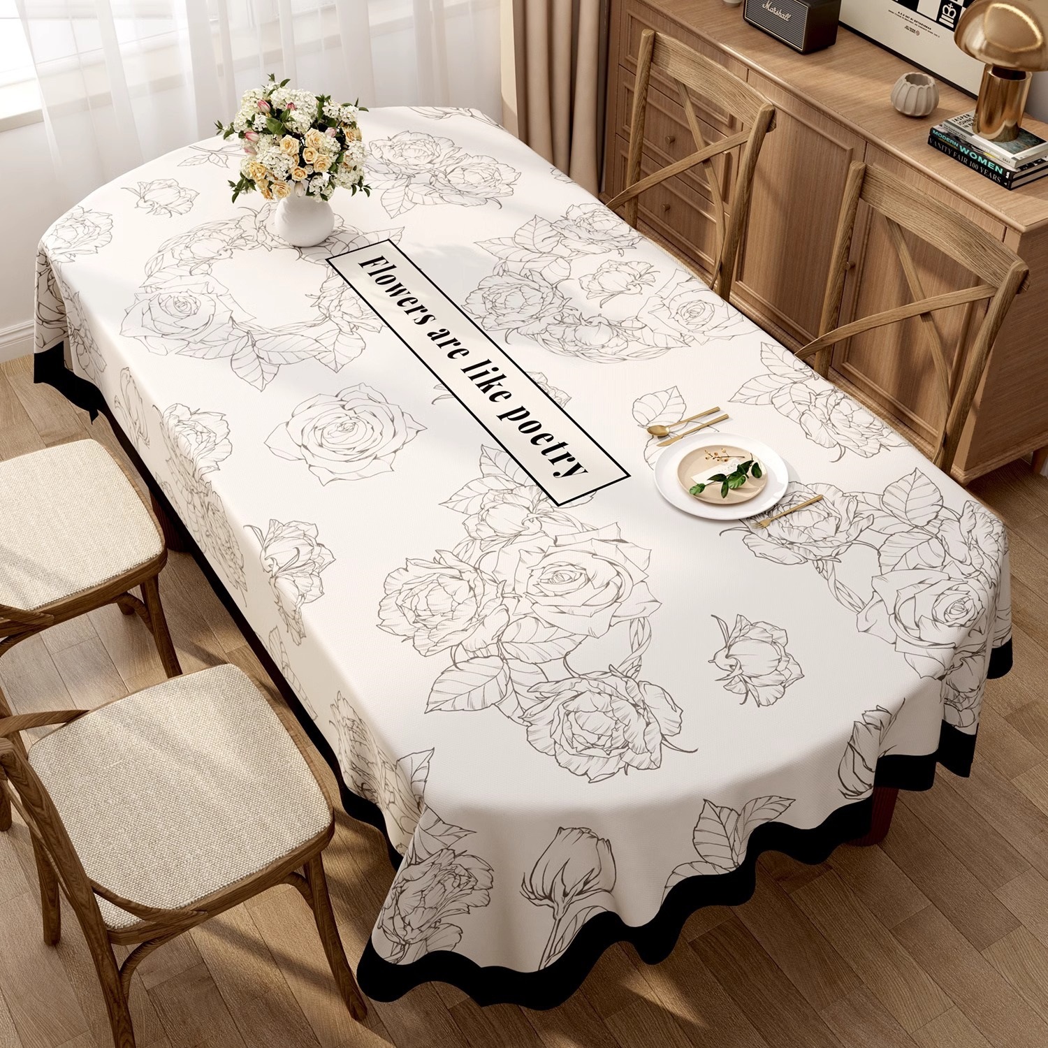 프랑스 타원형 식탁보 방수 및 내유성 노워시 화상 방지 PVC 식탁보 라이트 럭셔리 커피 테이블 커버