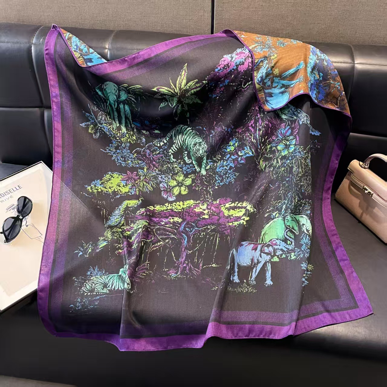 여성용 모조 벨벳 스카프, 복고풍 새 스타일, 스플라이스 프린트, 연령 감소, 양면, 다양한 색상, 대형 사각형 스카프, 여행용 비치 타월, 자외선 차단스토어 가기