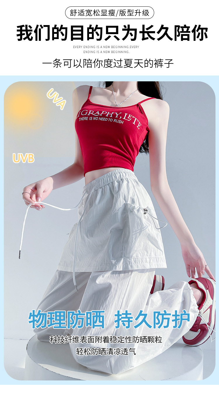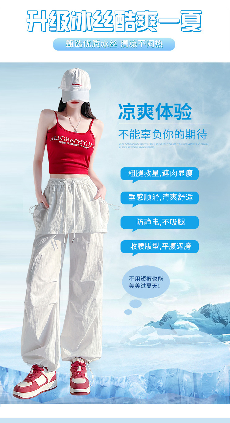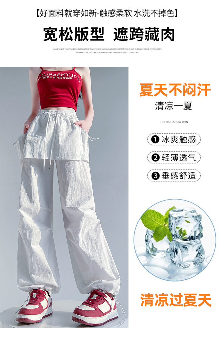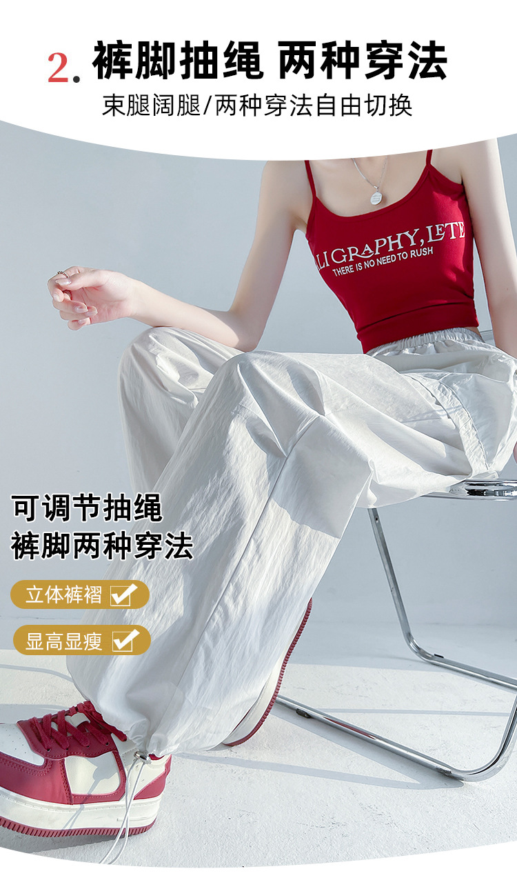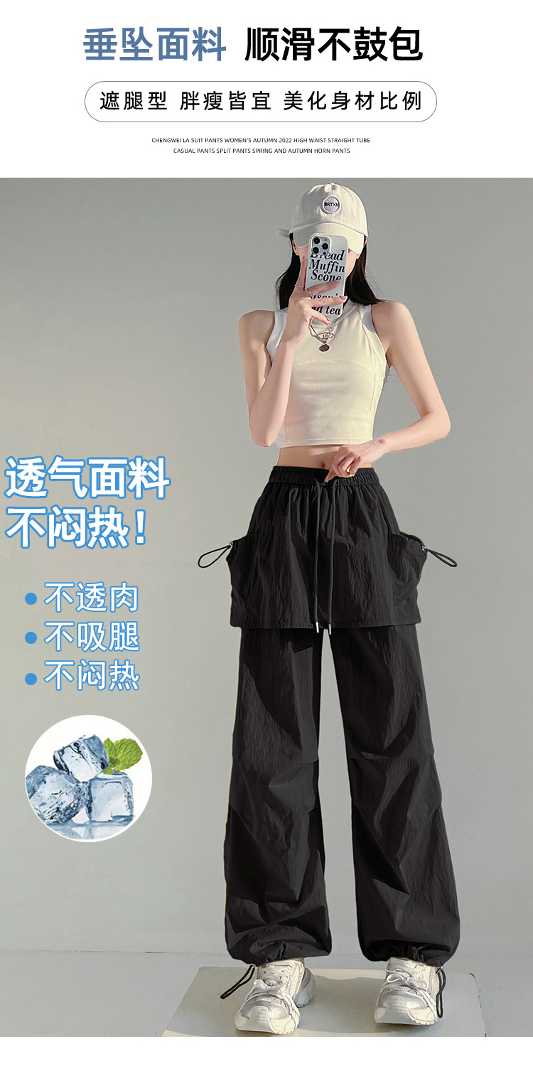 아메리칸 핫걸 아이스 실크 속건성 작업복 여성 여름 얇은 투웨어 캐주얼 바지 등산 스포츠 자외선 차단제 와이드 레그 팬츠