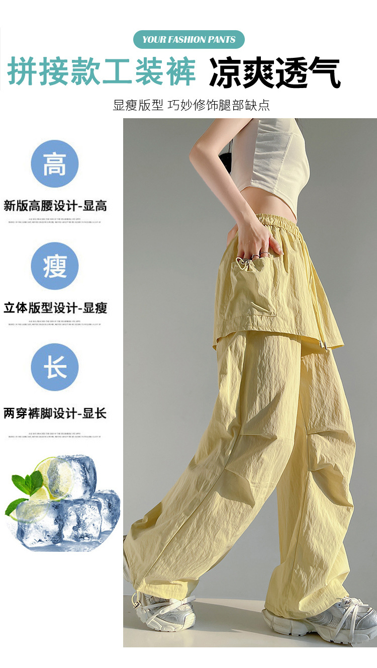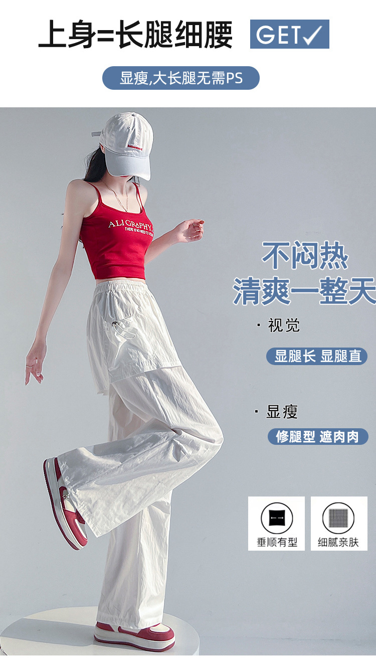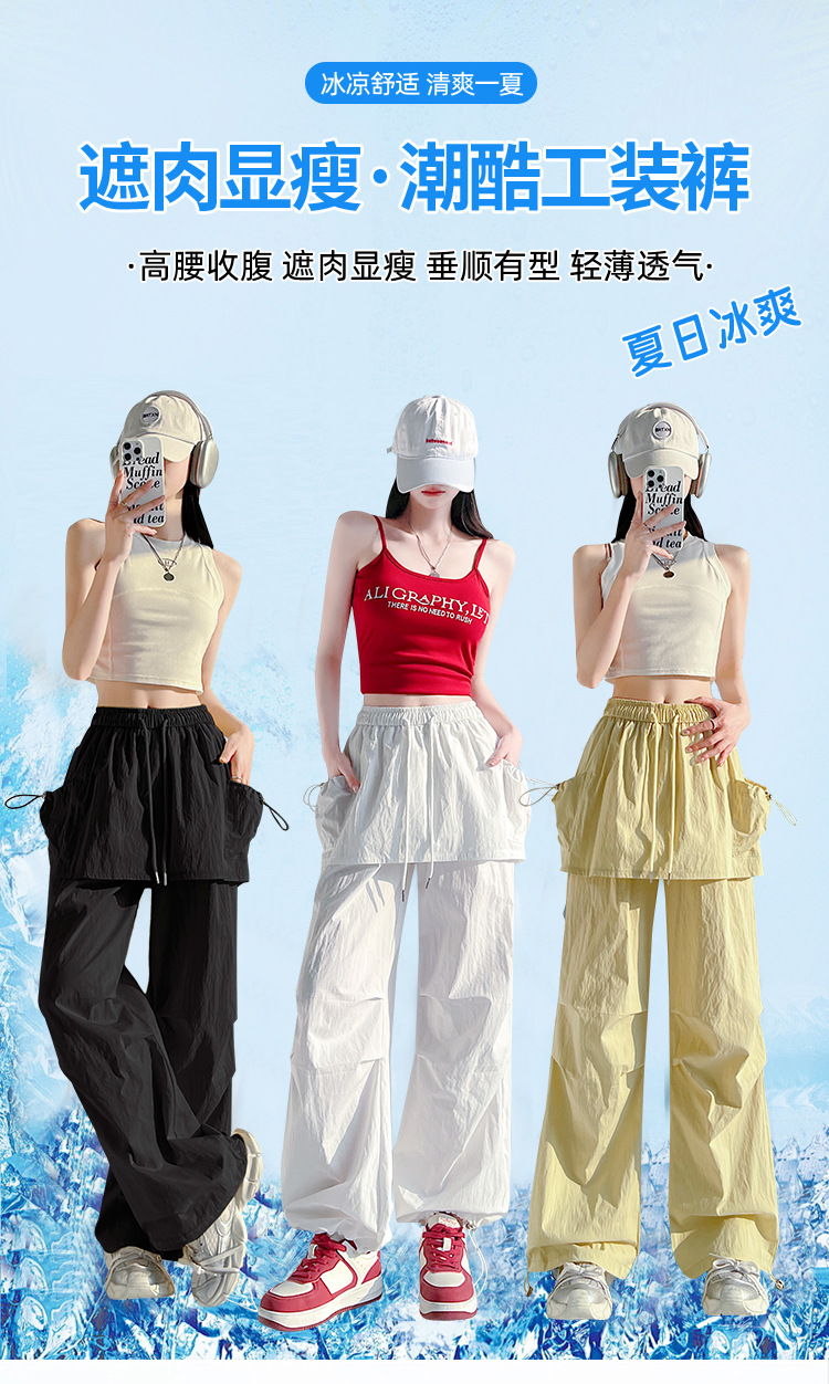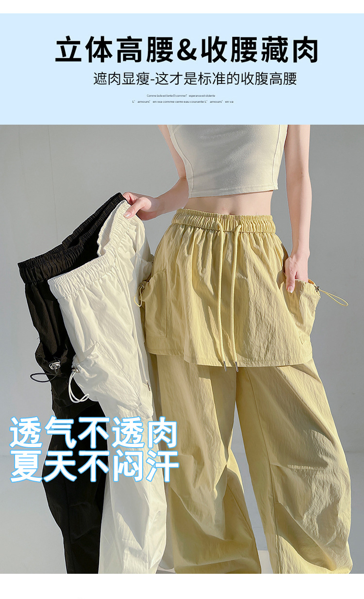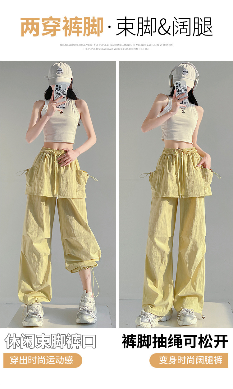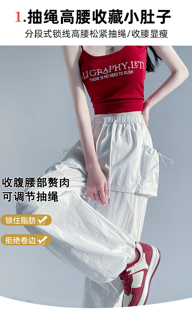 아메리칸 핫걸 아이스 실크 속건성 작업복 여성 여름 얇은 투웨어 캐주얼 바지 등산 스포츠 자외선 차단제 와이드 레그 팬츠