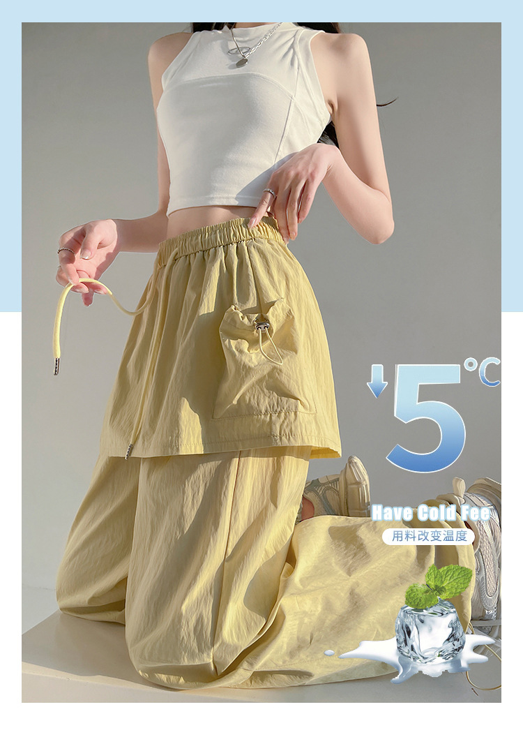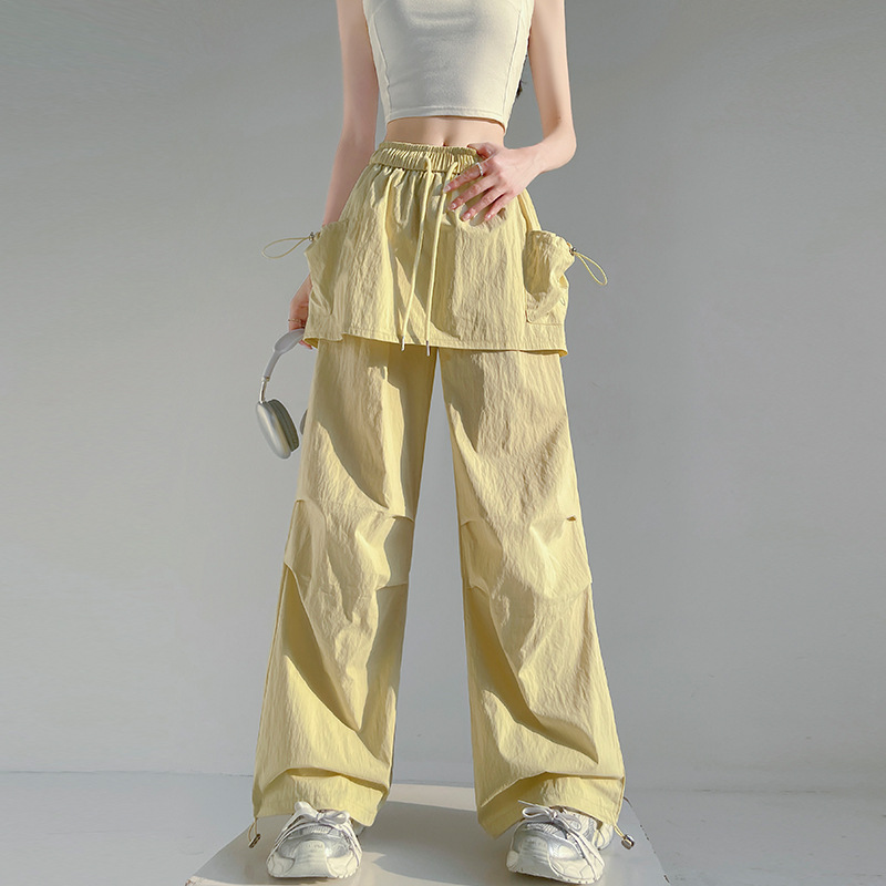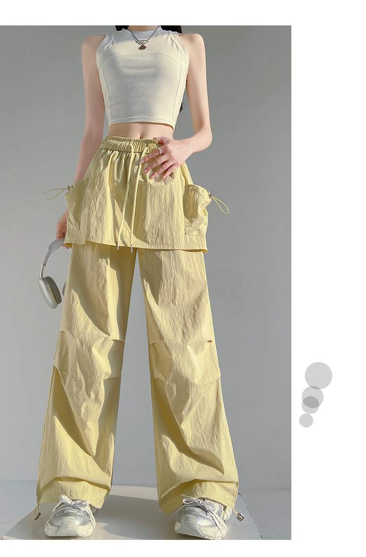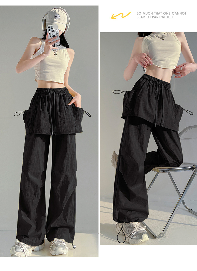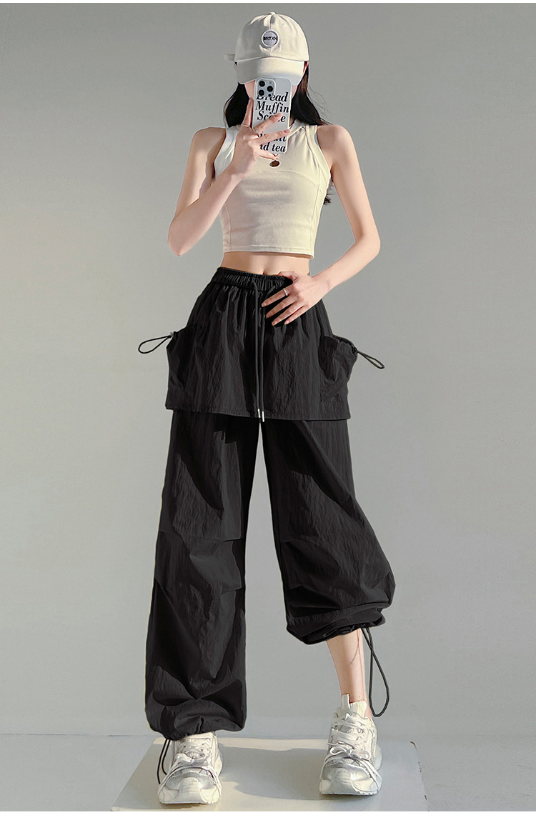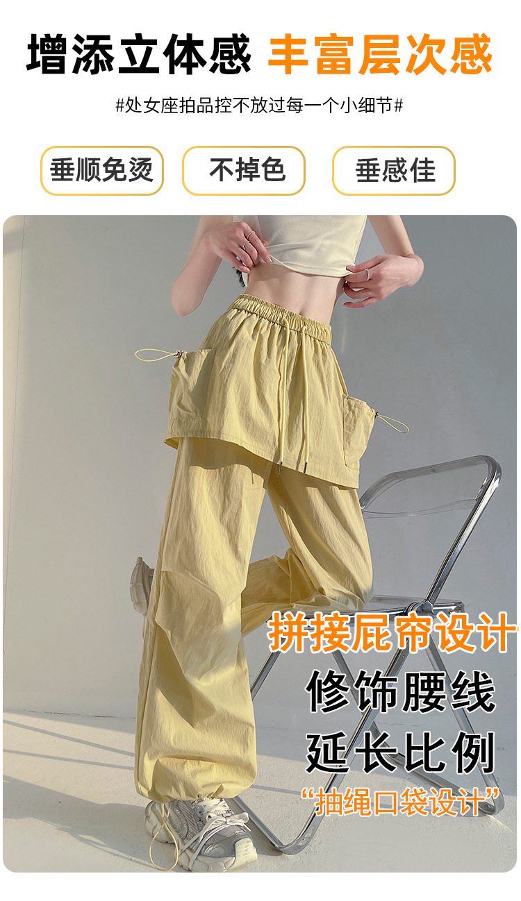 아메리칸 핫걸 아이스 실크 속건성 작업복 여성 여름 얇은 투웨어 캐주얼 바지 등산 스포츠 자외선 차단제 와이드 레그 팬츠