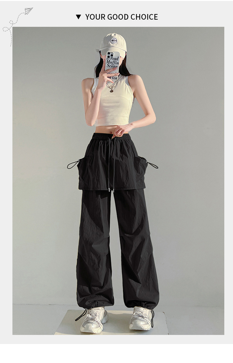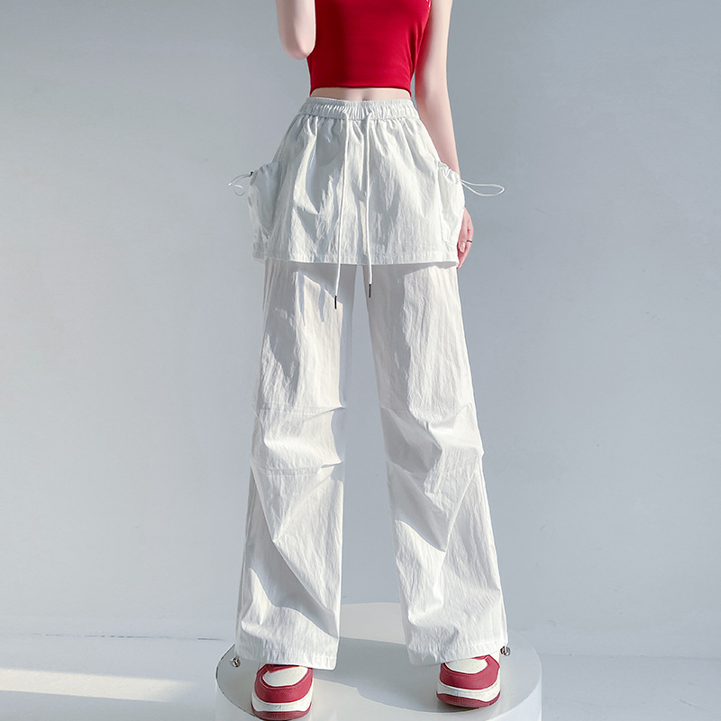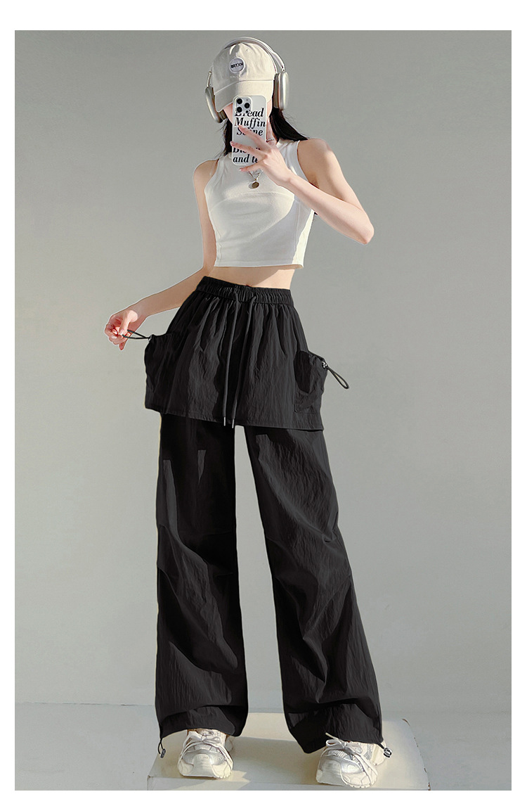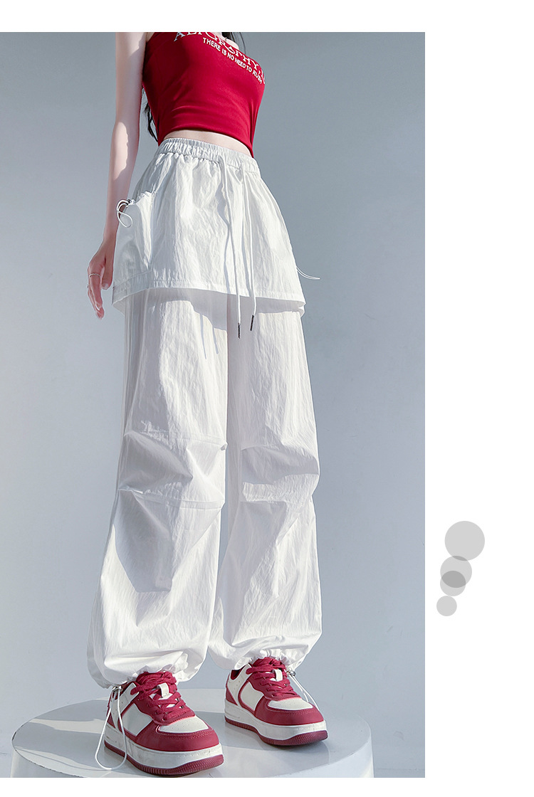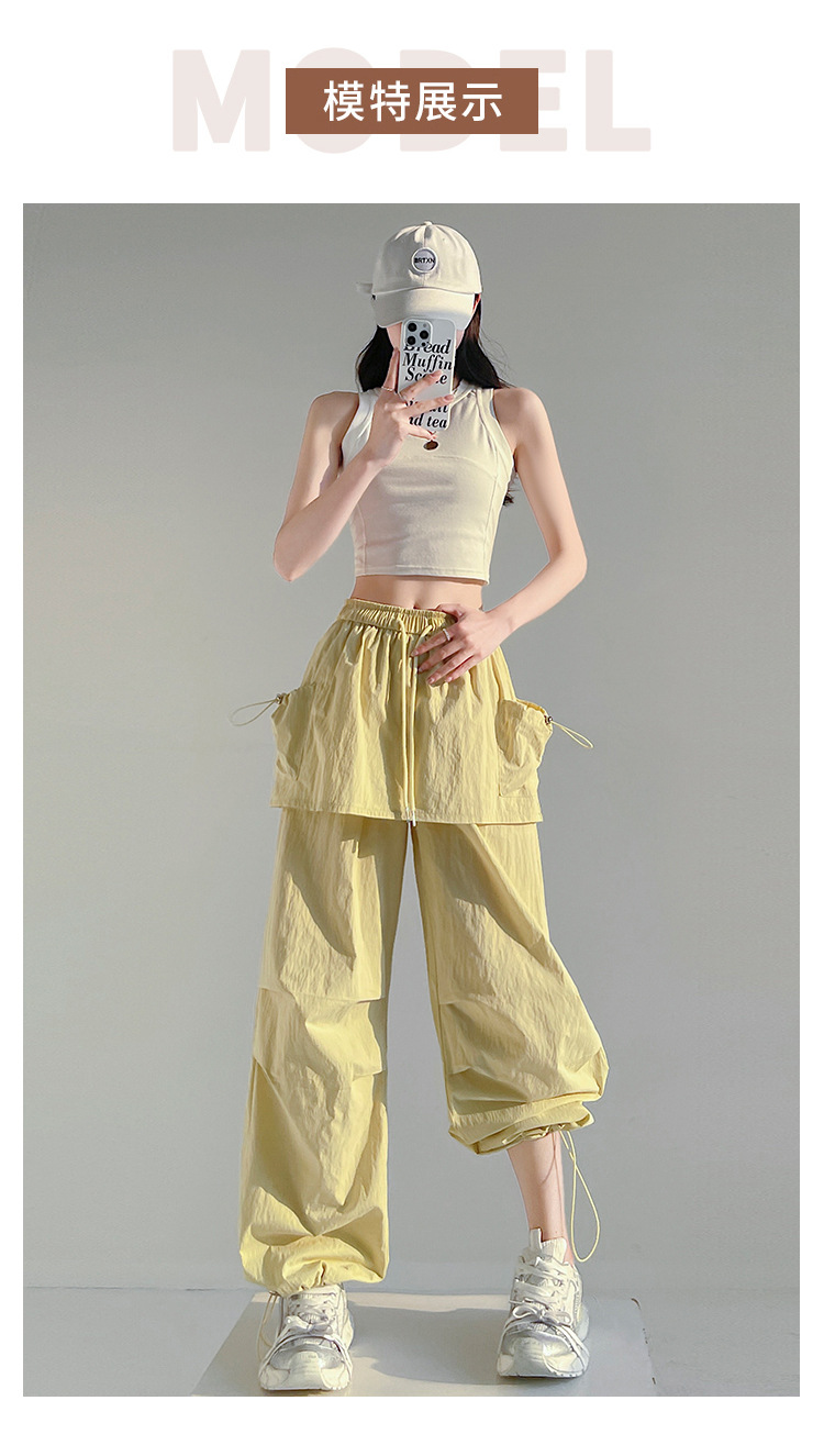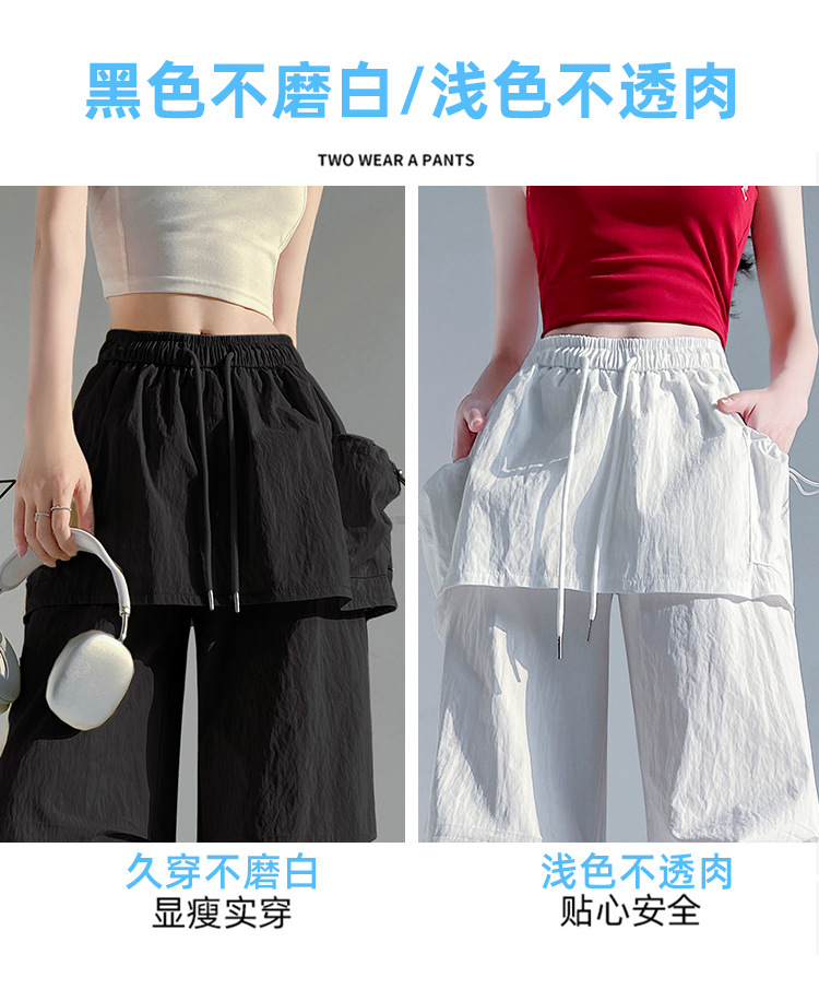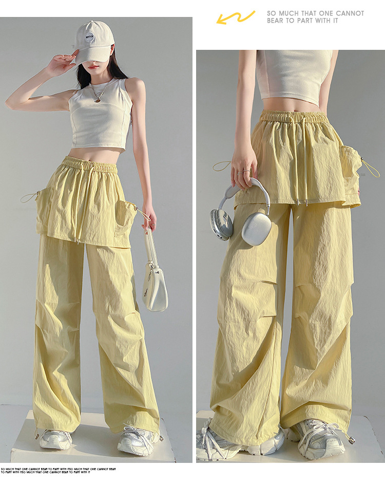 아메리칸 핫걸 아이스 실크 속건성 작업복 여성 여름 얇은 투웨어 캐주얼 바지 등산 스포츠 자외선 차단제 와이드 레그 팬츠