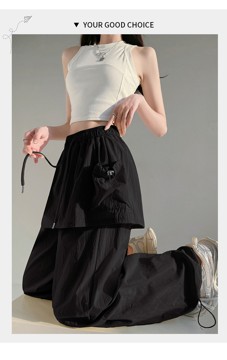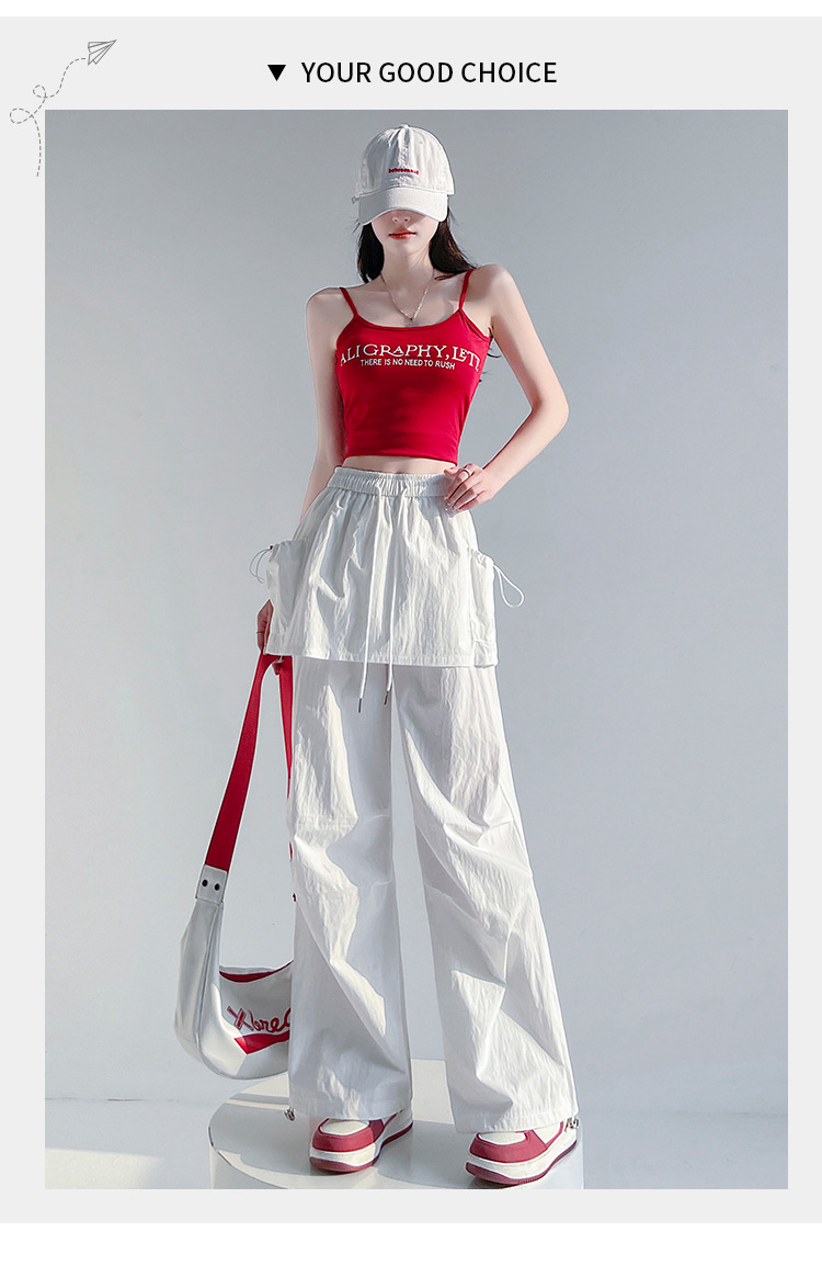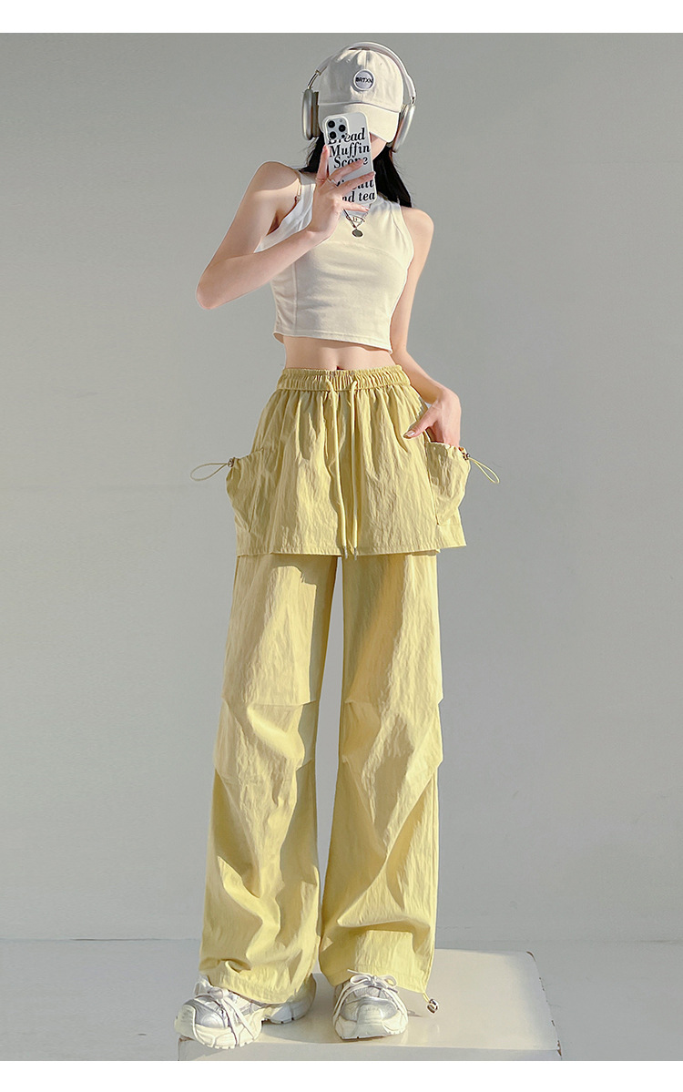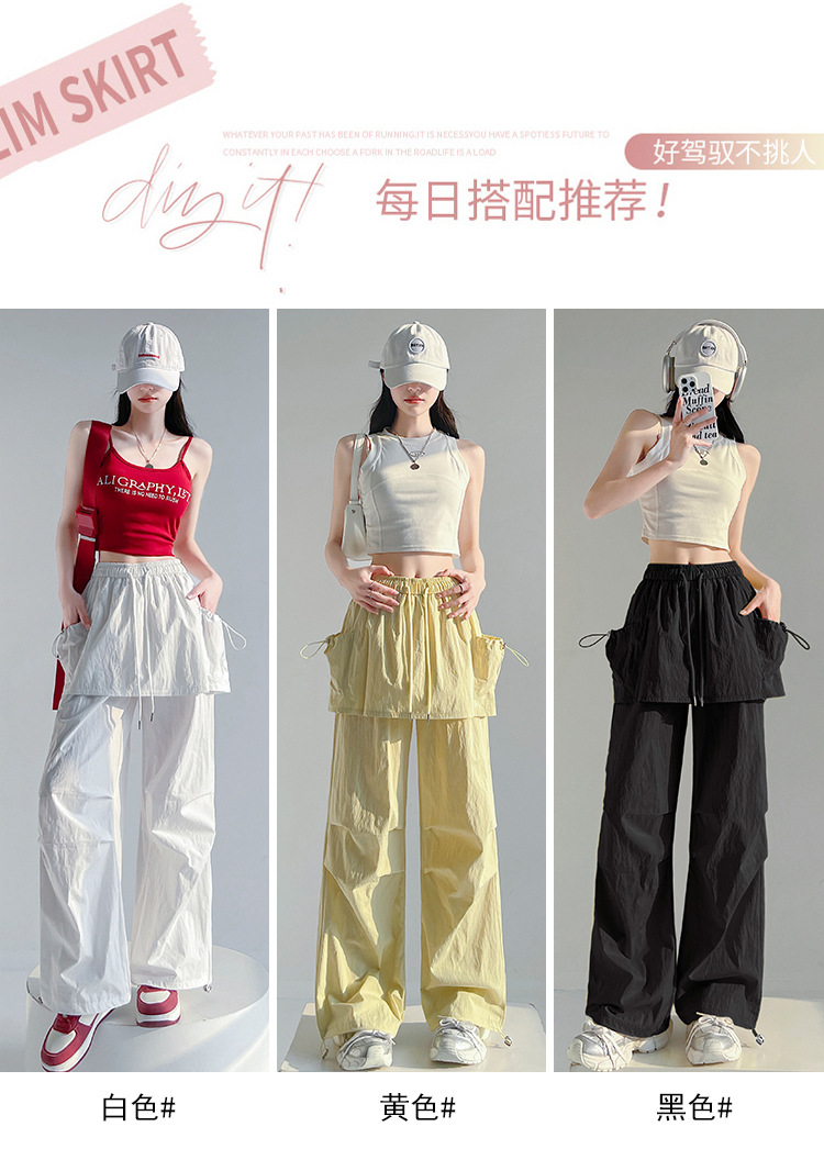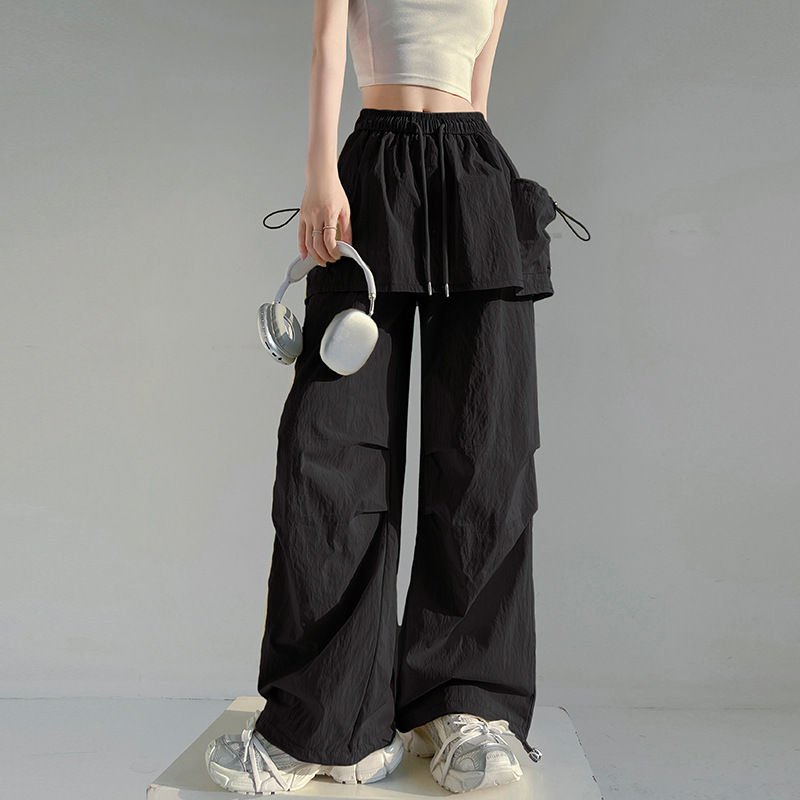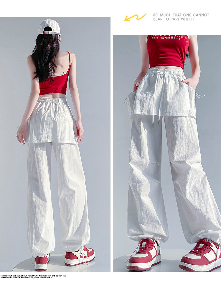 아메리칸 핫걸 아이스 실크 속건성 작업복 여성 여름 얇은 투웨어 캐주얼 바지 등산 스포츠 자외선 차단제 와이드 레그 팬츠