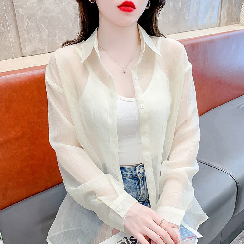 아이스 실크 셔츠 여성 긴팔 쉬폰 셔츠 여름 2025 새로운 스타일 다목적 얇은 카디건 셔츠스토어 가기