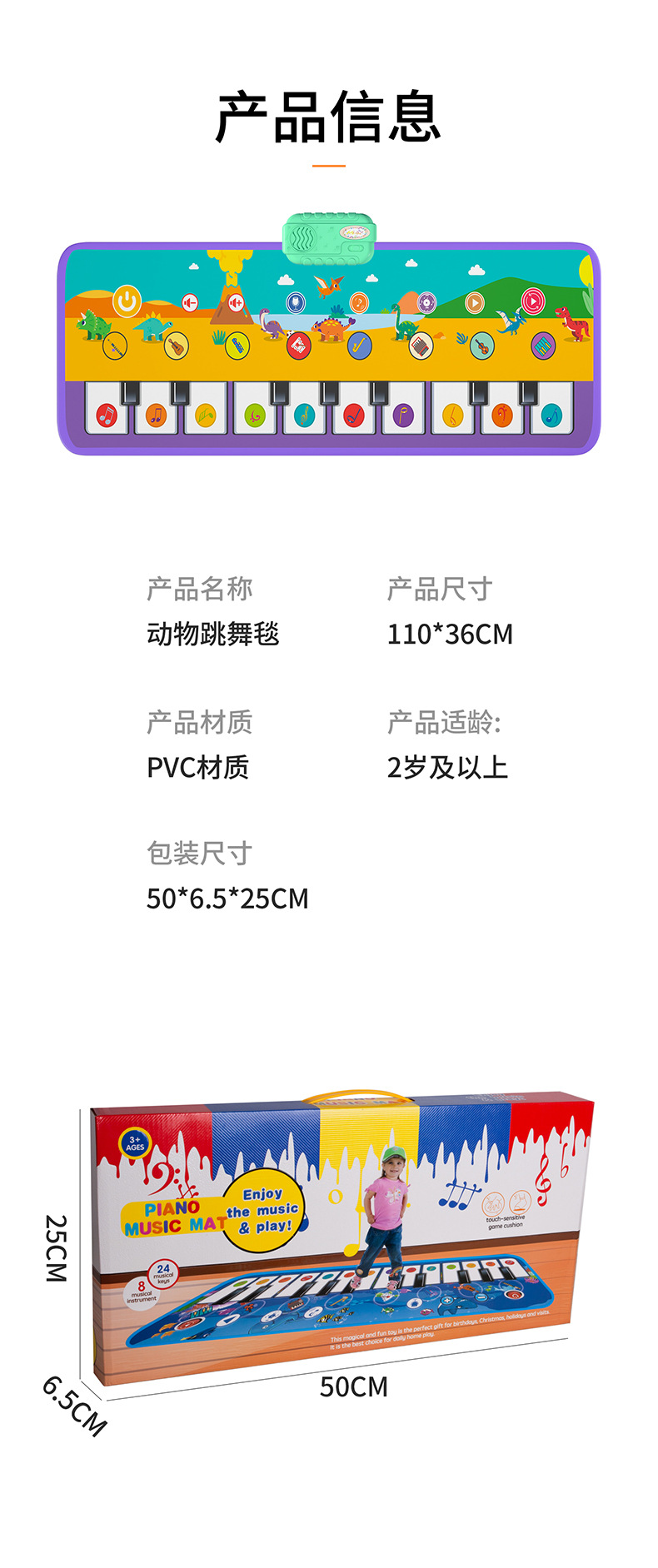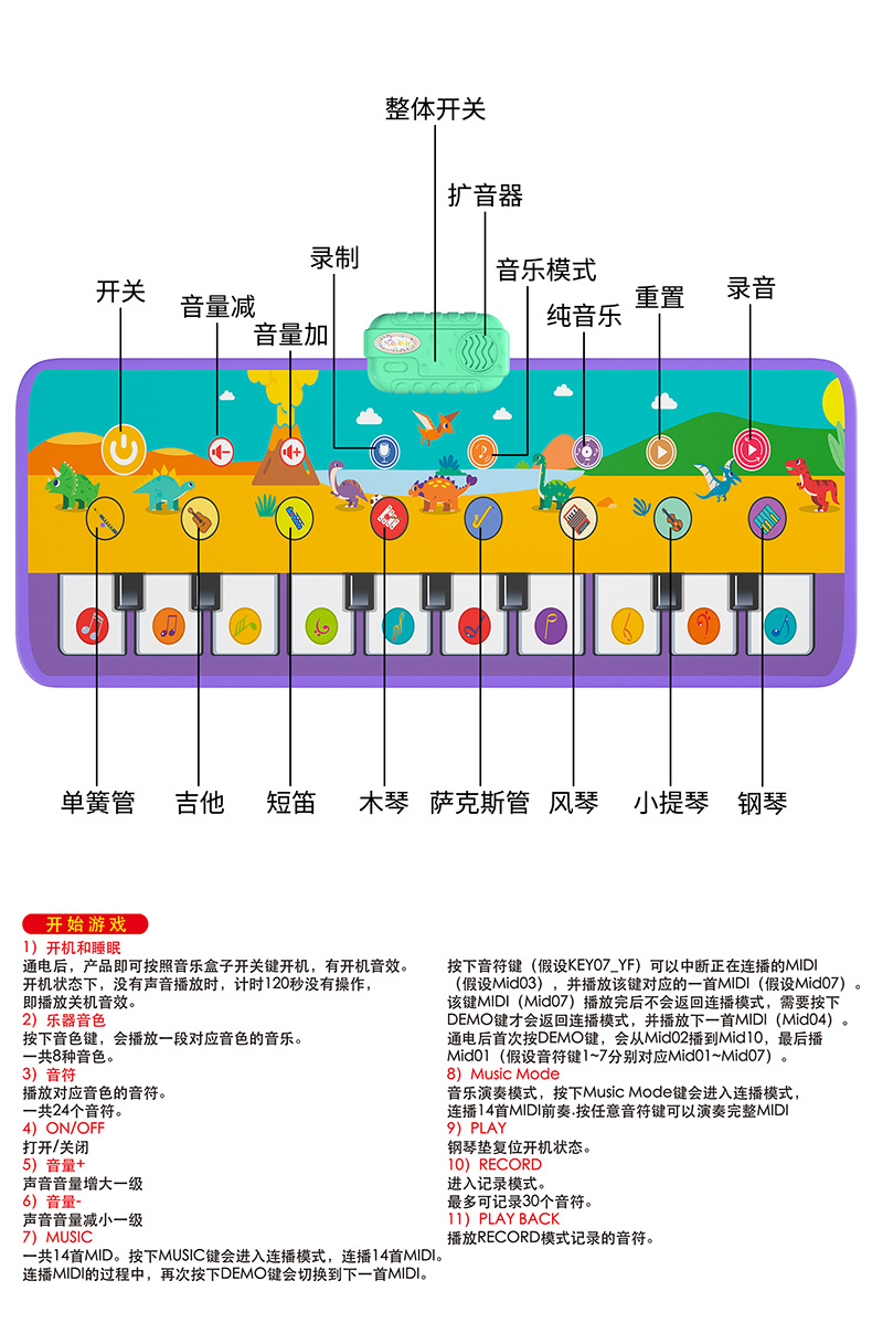 • 대형 공룡 피아노 음악 매트 [영어 컬러 박스]