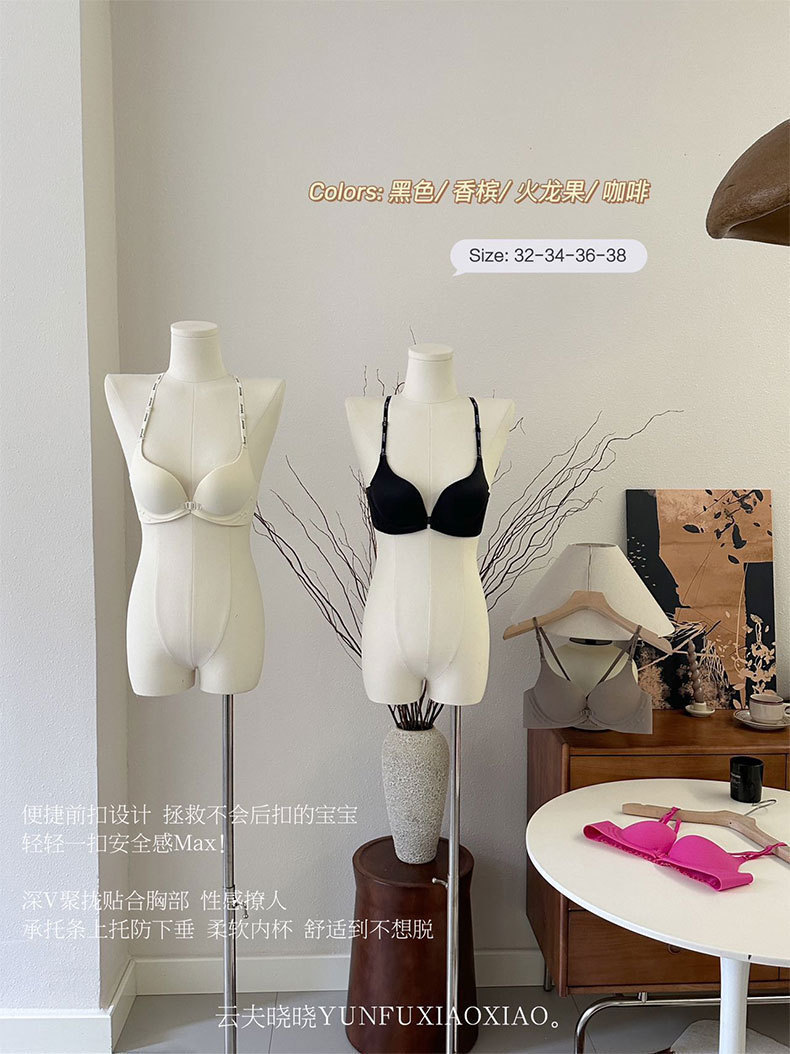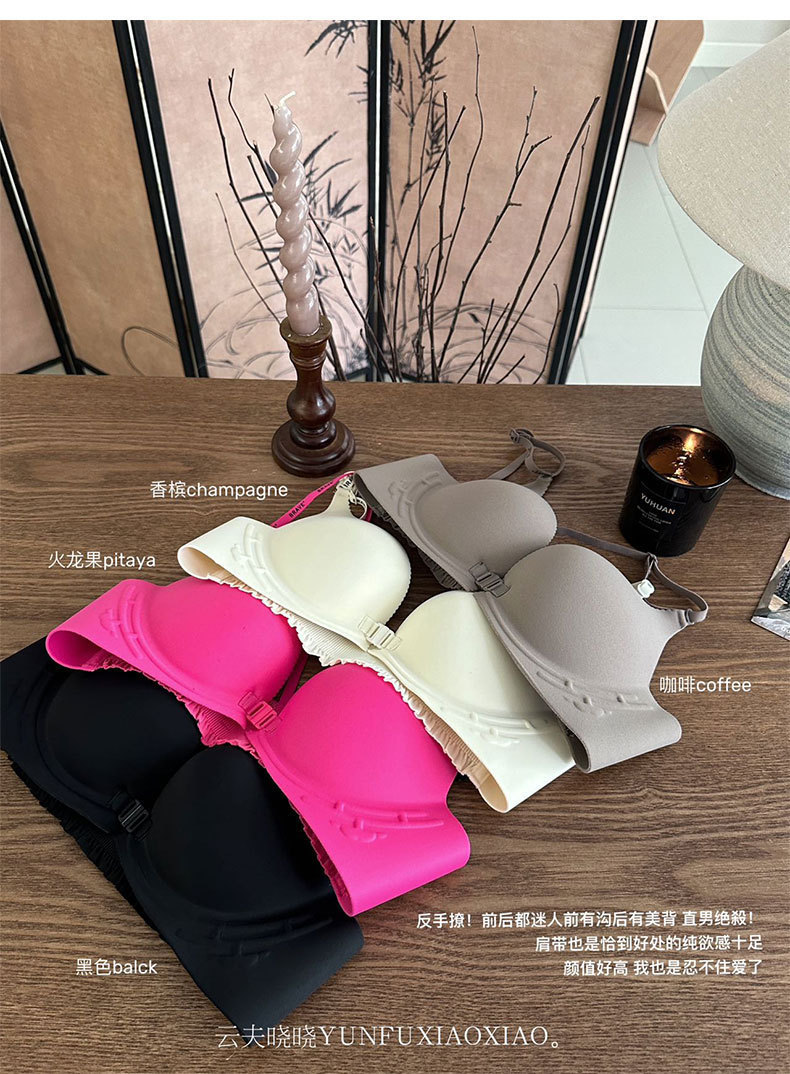 앞후크형 백리스 브라 여성용 작은 가슴 모아주는 두꺼운 패드로 볼륨업, 처짐 방지 레터 스트랩 탑업 브라 신상품스토어 가기
