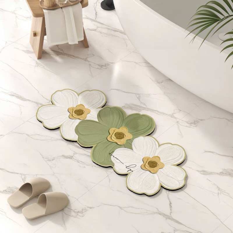 욕실 꽃 바닥 매트, 화장실 흡수성 발 매트, 욕실 문, 가정용 규조토 진흙 미끄럼 방지 속건성 침실 카펫
