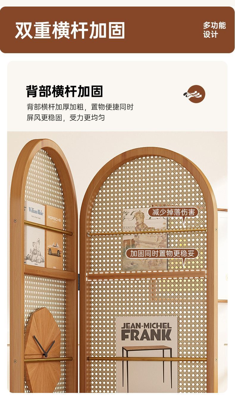 작은 아파트 거실을 위한 복고풍 등나무 스크린 파티션, 접이식 출입구, 간단한 잡지 책장
