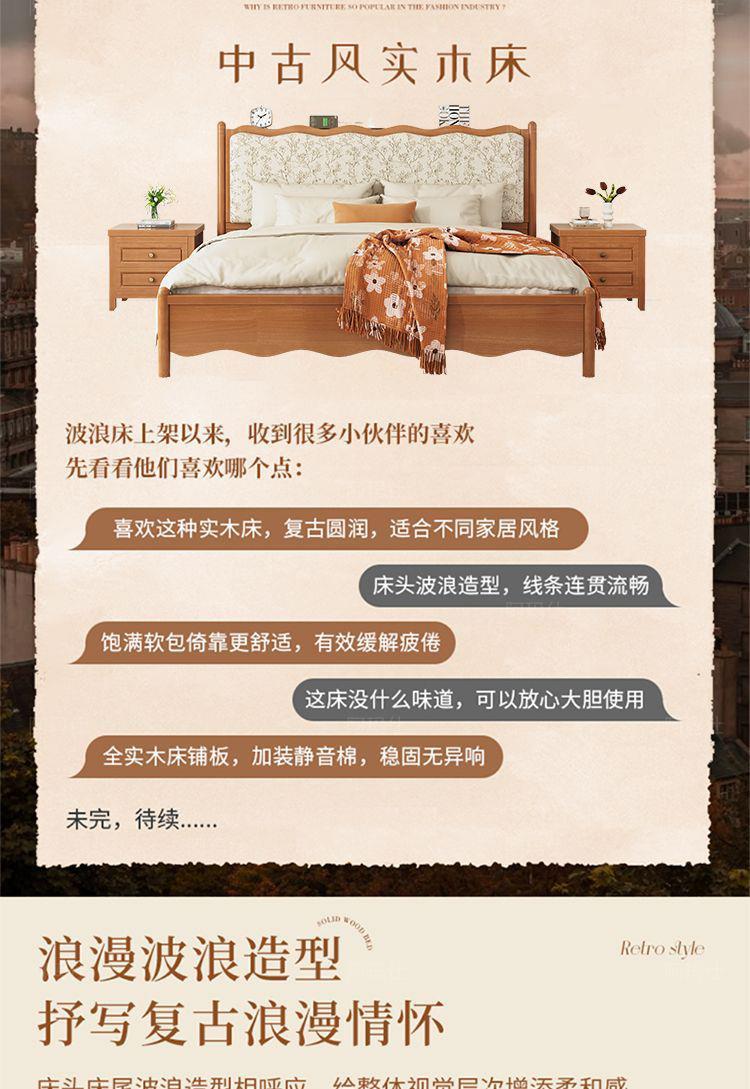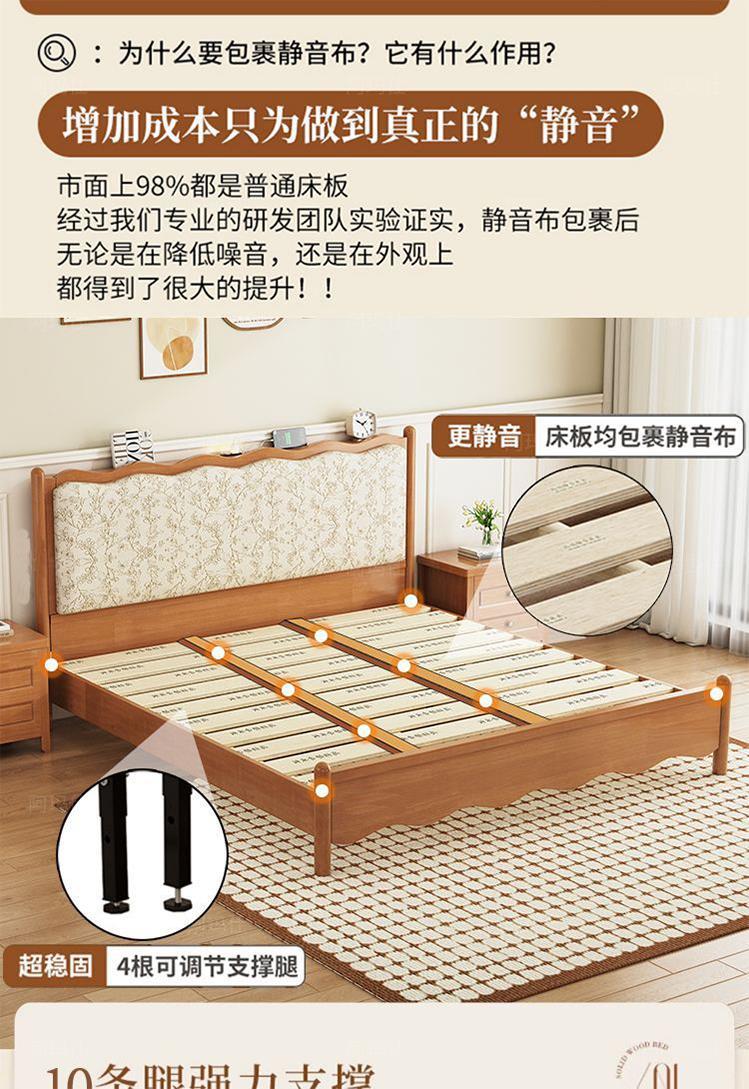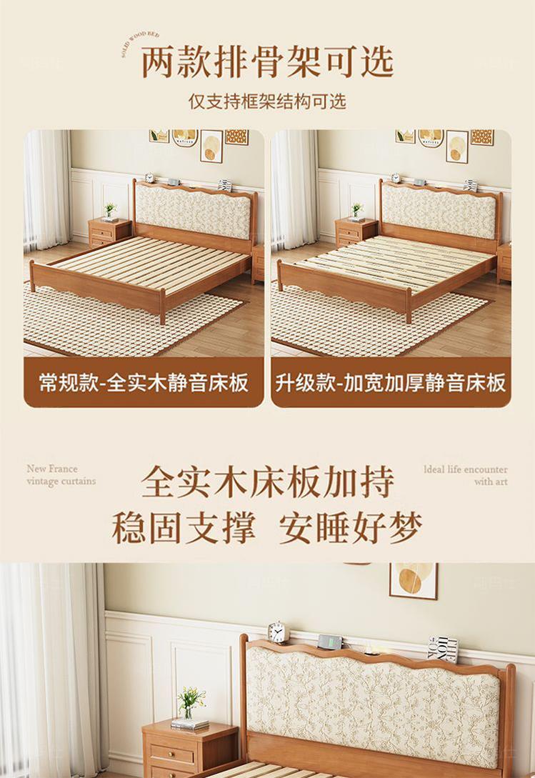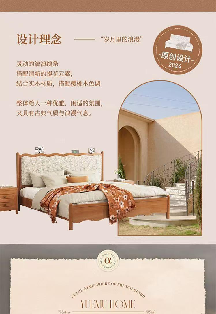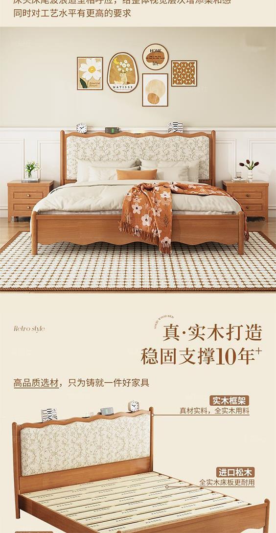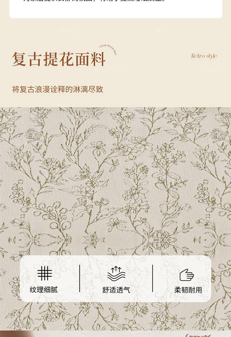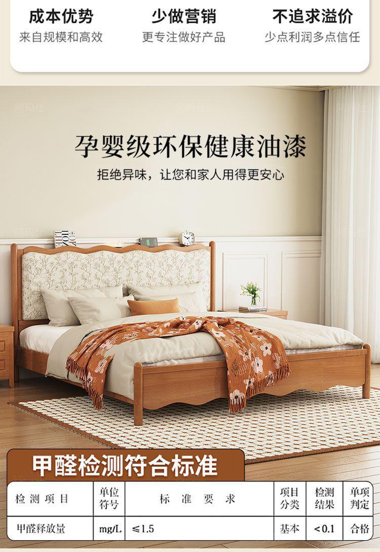 프렌치 레트로 노르딕 스타일 원목 침대 로그 컬러 중세 스타일 1.5 소형 아파트 미터 1.8 더블 프린트 소프트 백 침대스토어 가기