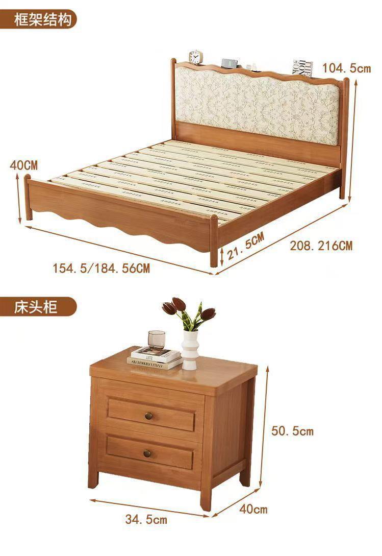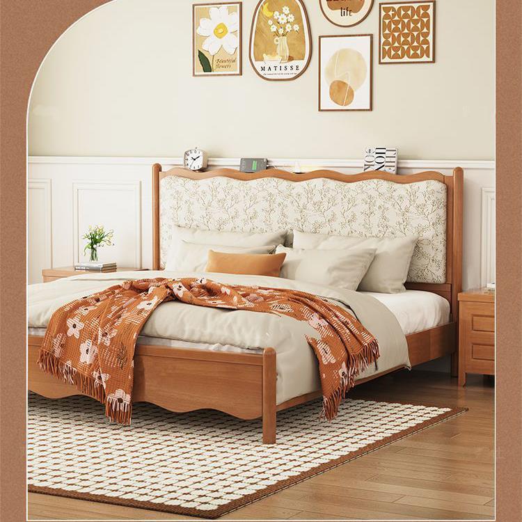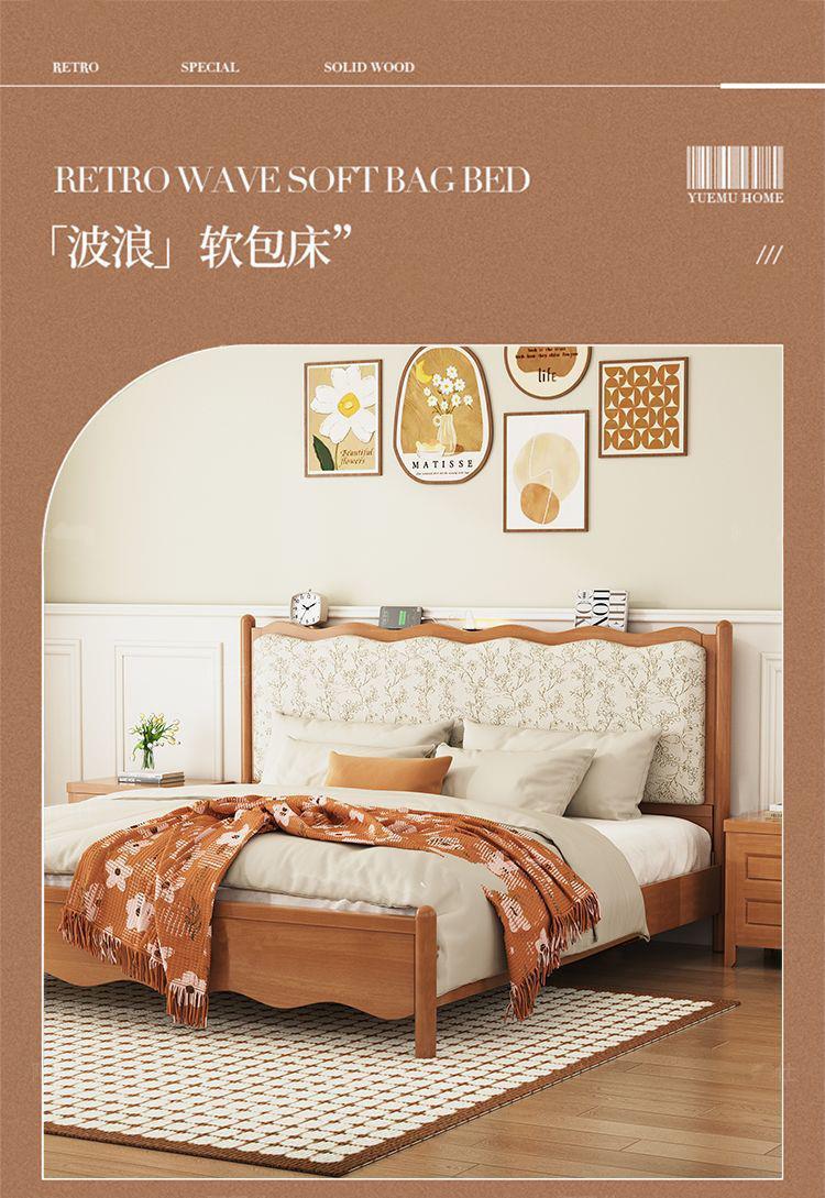프렌치 레트로 노르딕 스타일 원목 침대 로그 컬러 중세 스타일 1.5 소형 아파트 미터 1.8 더블 프린트 소프트 백 침대