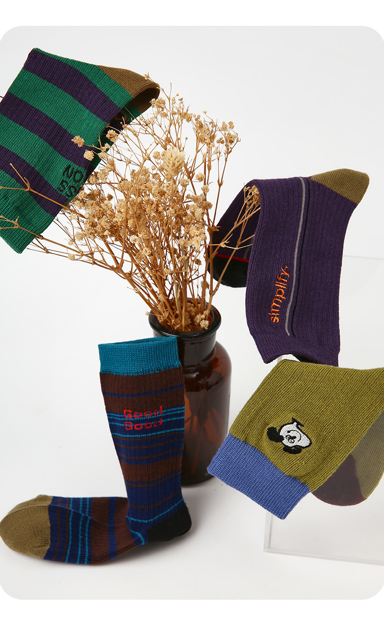 어린이 양말 도매 가을 새로운 더블 바늘 수 놓은 편지 아기 중간 튜브 양말 뼈없는 통기성 소년 양말 면화