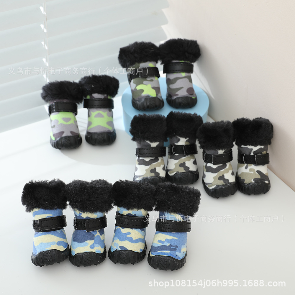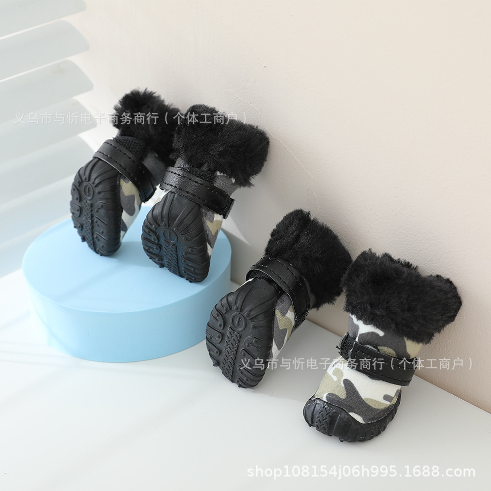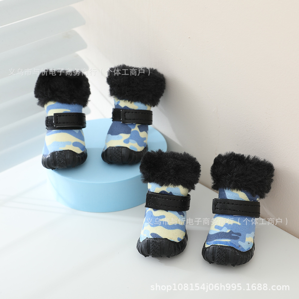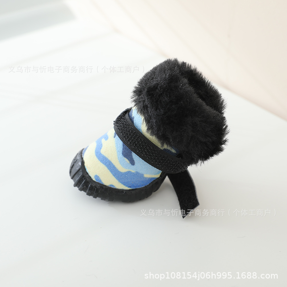 애완견 신발 테디 비숑 부드러운 플러시 위장 따뜻한 두꺼운 스노우 부츠 방한 통기성 미끄럼 방지 신발스토어 가기