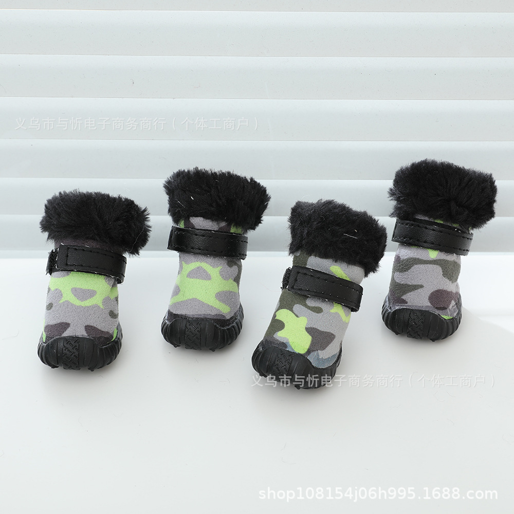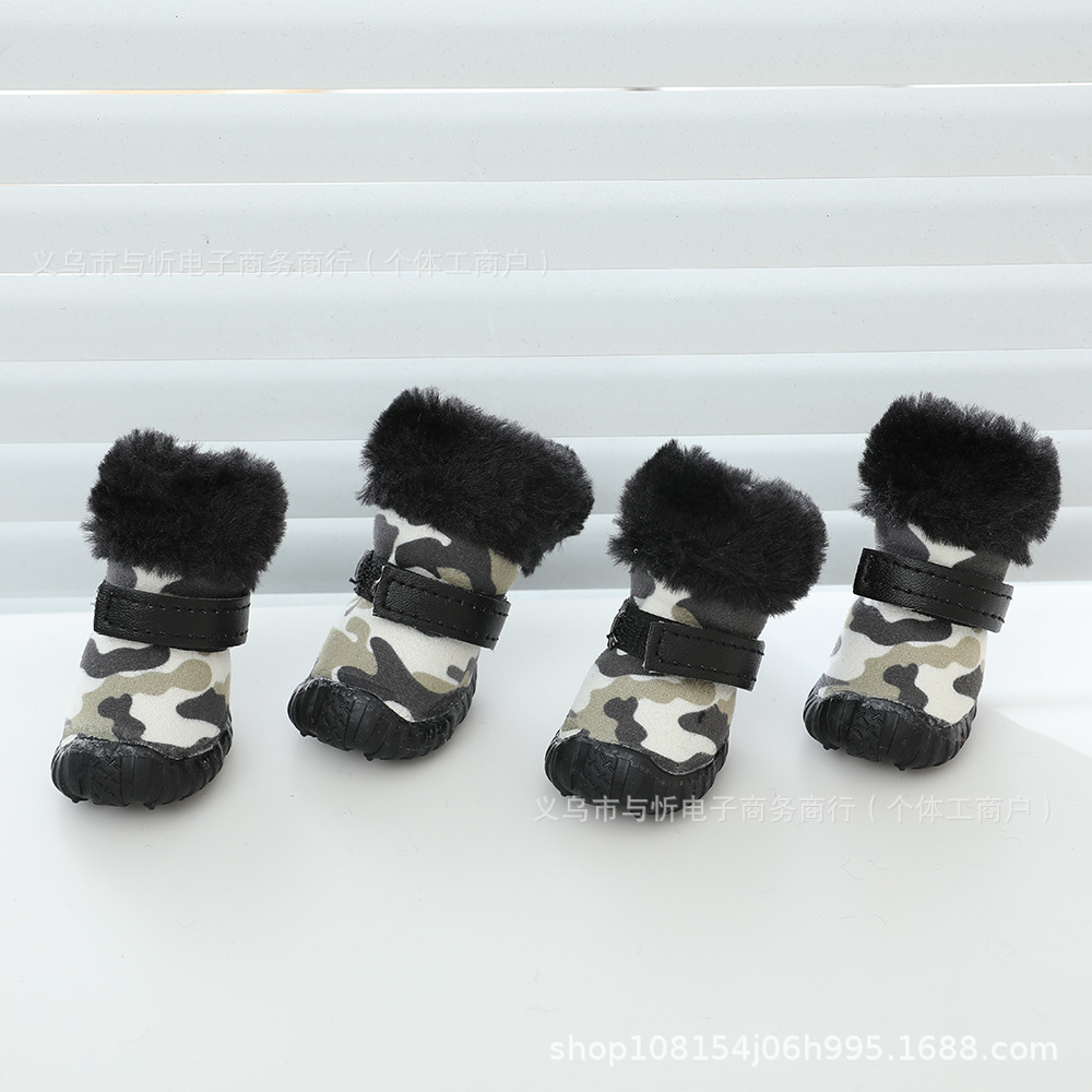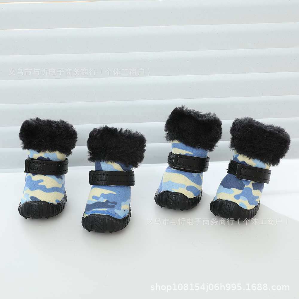애완견 신발 테디 비숑 부드러운 플러시 위장 따뜻한 두꺼운 스노우 부츠 방한 통기성 미끄럼 방지 신발