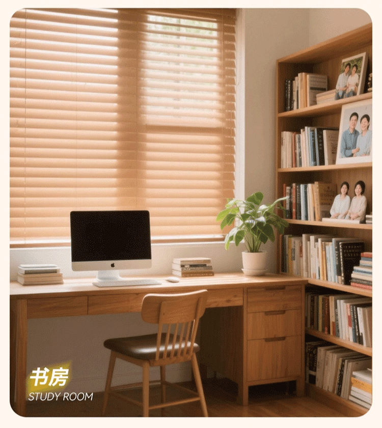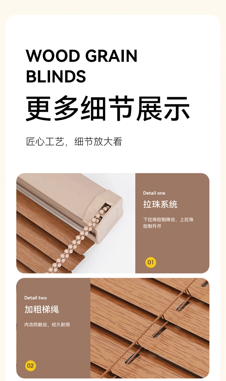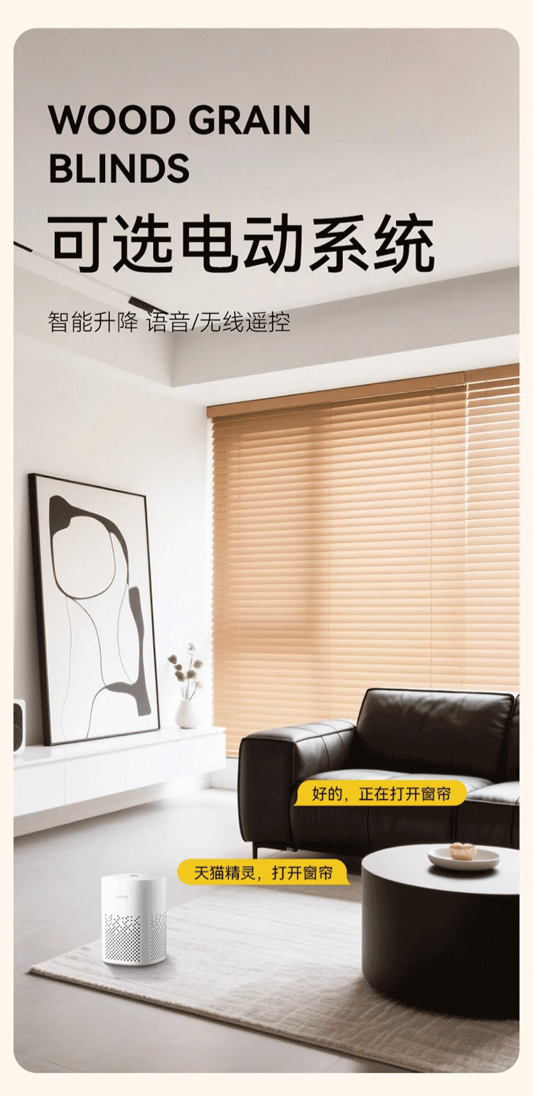 샤오싱 펑투 25mm 나무결 색상 알루미늄 합금 블라인드 커튼, 차양 롤스크린, 전동 블라인드, 창문 및 발코니용스토어 가기