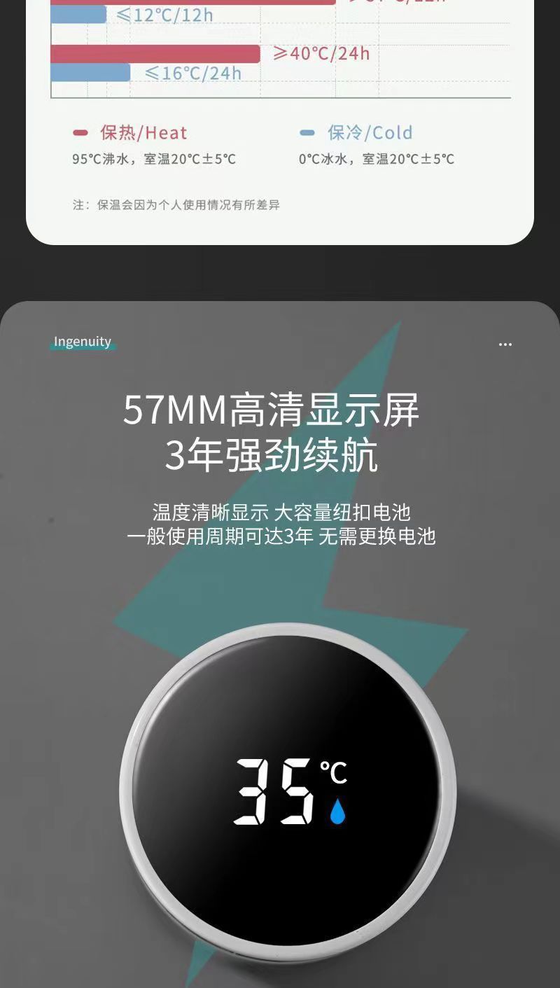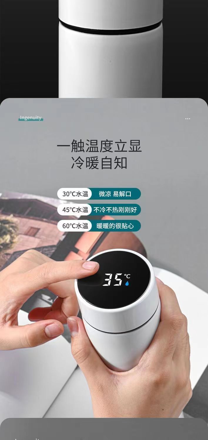 국경 간 온도 표시 온도 컵 스테인레스 스틸 절연 컵 비즈니스 이벤트 선물 컵 휴대용 자동차 워터 컵 맞춤 로고스토어 가기