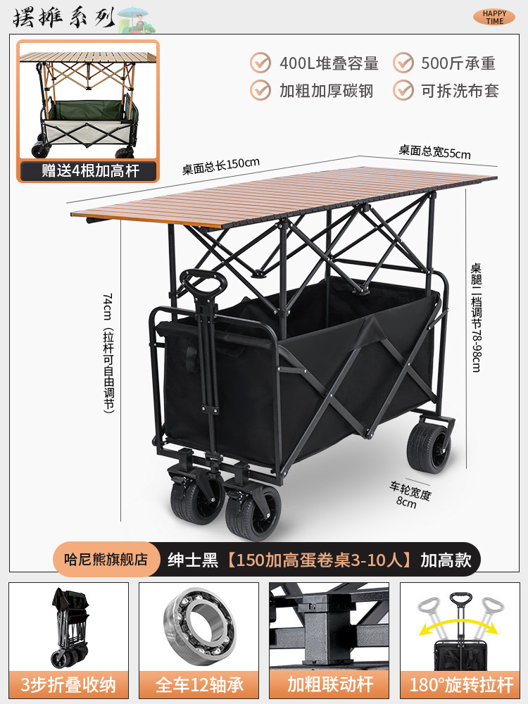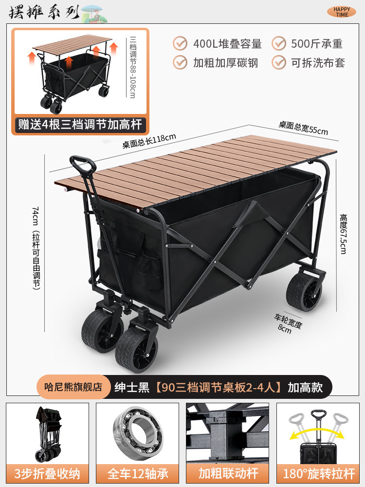 캠핑 트롤리 캠프 야외 접이식 휴대용 캠프 트레일러 트롤리 다기능 캠핑 트롤리스토어 가기