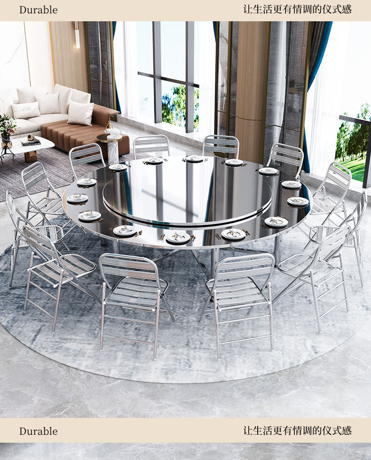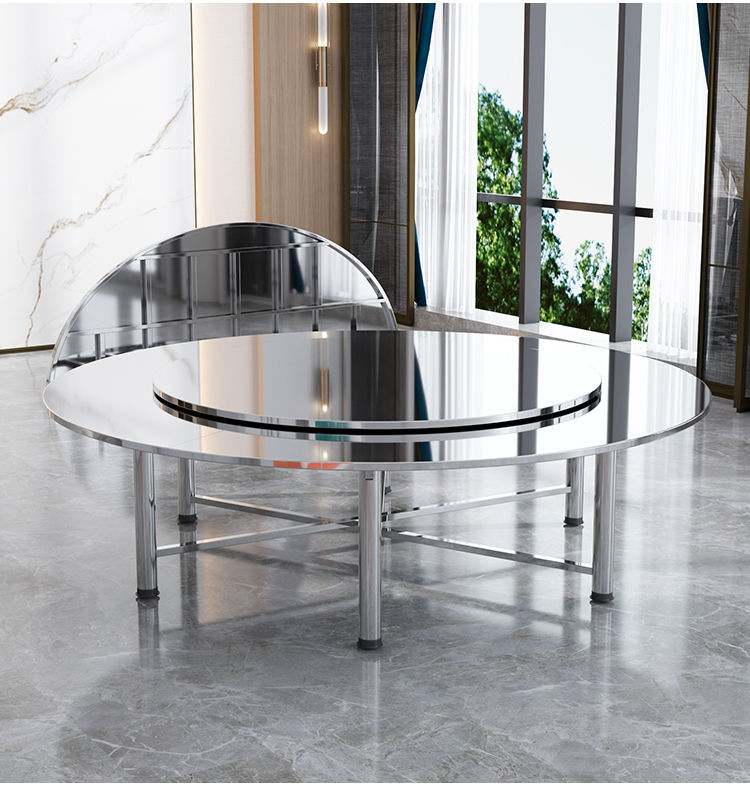304 두꺼운 스테인레스 스틸 접이식 원형 테이블 턴테이블 가정용 상업용 호텔 야외 식사 원형 테이블 식탁